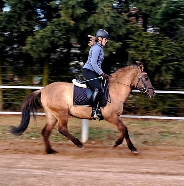 Wunderchöner Milo💗🎠🍬🥕💯 Konikwallach - perfekt für Kinder! Bald 4 j.a ca. 1,42m ( noch in Wachstum) Kinderlieb Schön angeritten und Gelände sicher, auch alleine. Springt gerne. Mit Vollabstammung, Ohne Unarten Top Gesund Offenstall geeignet Standort nähe Görlitz Videos vorhanden. Transport möglich
