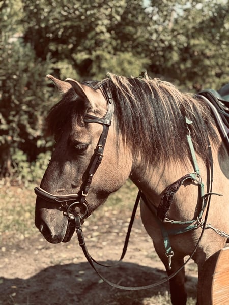 Gelassenes Wallach. Gesunder, junger Pferd. Geht selbstständig in die Gelände. Im Dressurviereck ausgebildet, erste Springversuche. Problemlos beim Schmied. Das ganze Jahr über in offener Boxenhaltung gehalten. Kein Problem beim Einsteigen in den Hänger. Gewöhnt daran, alleine im Stall zu stehen. Ein Freund fürs Leben.
