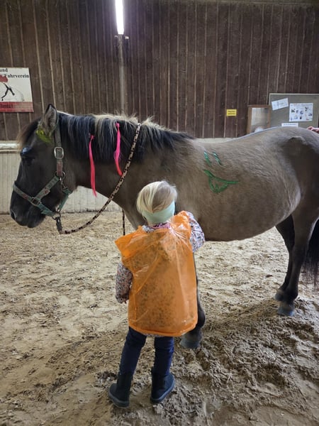 Schweren Herzens und mit weinenden Augen, haben wir uns dazu entschieden, unsere liebenswerte Ponystute "Berta" zu verkaufen. Berta ist dreizehn Jahre alt und gerade im besten Alter. Sie ist ein absolutes Herzenspferd und im Alltag komplett unerschrocken. Wir bringen sie morgens im Winter im Dunkeln auf die Weide, an Autos, Lichtern, Schneepflug, Bussen usw. vorbei und auf sie ist immer Verlass. Sie ist bei uns nie ernsthaft krank gewesen und ist robust. Sie steht im Sommer 24/7 auf der Weide und hatte nie Probleme mit Hufrehe. Sie ist regelmäßig geimpft worden, hat keine Angst vor dem Tierarzt und auch beim Hufschmied ist sie brav. Sie ist aktuell barhuf, da sie sehr gute Hufen hat, hatte aber auch mal Eisen drauf. Meine Tochter kann alle Spielereien mit ihr machen, ob Popo rutschen, drauf stellen, unter ihr durch gehen, ist alles kein Problem. Ebenso ist sie in der Herde absolut brav und zeigt sich anderen Pferden gegenüber immer freundlich. Beim Ausreiten ist sie eine Lebensversicherung und bleibt immer bei der Gruppe, bockt und steigt nicht und kann hier auch von kleineren Kindern geritten werden. Wir haben regelmäßig mit ihr am Reitunterricht teilgenommen und auch kleine Sprünge springt sie. Sie liebt es an Agility Kursen teilzunehmen, da sie sich hier absolut unerschrocken zeigt. Gerade Bodenarbeit mit ihrem lieblings Mensch, macht ihr große Freunde. Sie ist trittsicher und gut zu sitzen. Der Grund, warum wir sie abgeben möchten, ist folgender. Meine Tochter hat bereits mit Berta einige Turniere geritten. Von Führzügel bis einfacher Reiterwettbewerb und war auch hier sehr erfolgreich. Leider hat uns Berta gezeigt, dass dies einfach nicht Ihre Welt ist. So geht sie dann Beispielsweise nicht mehr auf den Anhänger, oder rennt einfach aus dem Dressurviereck heraus :( Es ist unfair Berta gegenüber, etwas von ihr zu verlangen, was einfach nicht ihr Ding ist. Sie liebt lange, gemütliche Ausritte, herausfordernde Agility Kurse, Schwimmen gehen.... aber Turniere sind nicht ihre Welt. Deswegen verkaufen wir sie auch nur an absolute Freizeitreiter/innen, die keine Turnierambitionen haben. Sie liebt kleine Kinder und macht bei mir zurzeit das Bambini Reiten, wo 4 Kinder gleichzeitig auf ihr sitzen können. Ob beim Anmalen oder kleinen Spielen mit Bällen, sie bleibt immer ruhig und macht einen tollen Job. Wir verkaufen definitiv nicht in reine Boxenhaltung, sondern entweder in einen Offenstall oder wo stäglicher Weidegang gewährleistet ist. Der emotionale Wert dieses Pony ist für uns unbezahlbar, können aber leider kein weiteres Pferd unterhalten. Berta wird mit kompletten Zubehör abgegeben, einem Wintec Sattel, Trense, Decken, Halfter, Gamaschen, Schabracken usw. Bei Fragen gerne schreiben.