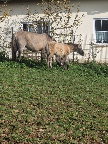 Zum Verkauf steht unsere Konik Stute „Wilde 13“, geboren vor 6 Monaten. Sie ist ein super cooles, menschenbezogenes und sehr liebes Fohlen mit ausgeglichenem Charakter. Die Kleine wächst artgerecht in einer Jungpferdeherde auf und kennt den täglichen Umgang mit Menschen. Sie zeigt sich neugierig, freundlich und gelassen – beste Voraussetzungen für Freizeit, Zucht oder spätere Ausbildung.