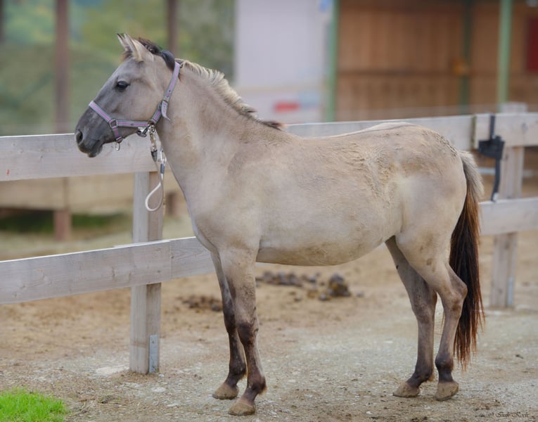 Wunderschönes, one-of-a-kind Konik-Stutfohlen zu verkaufen! Zum Verkauf steht eine bezaubernde Konik-Jungstute, geboren im Januar 2024. Diese charmante Silber-Graufalbe hat derzeit ein Stockmaß von 135 cm (gemessen), mit langen Beinen und einer sportlichen Statue. Sie stammt aus einer Sportkonik-Linie. Beide Eltern sind über 1.42m. Die Stute besticht durch ihr freundliches, offenes und selbstbewusstes Wesen. Sie liebt Kuscheleinheiten und lange Spaziergänge (sie geht problemlos alleine mit ihrem Menschen mit). Manja ist halfterführig und kennt die ersten Lektionen am Boden. Sie kennt das Hofleben mit allen Geräuschen (Traktoren, LKW, Motorräder und Autos, Hunde, Kühe, Alpakas uvm). Sie ist geimpft, regelmäßig entwurmt, steht brav beim Hufbearbeiter und im Hänger. Wenn Sie Interesse an dieser tollen Jungstute mit viel Potential haben und mehr Informationen wünschen, zögern Sie bitte nicht, sich zu melden. Ich freue mich auf Ihre Anfrage! Kein Notverkauf. Kein Verkauf an Händler.