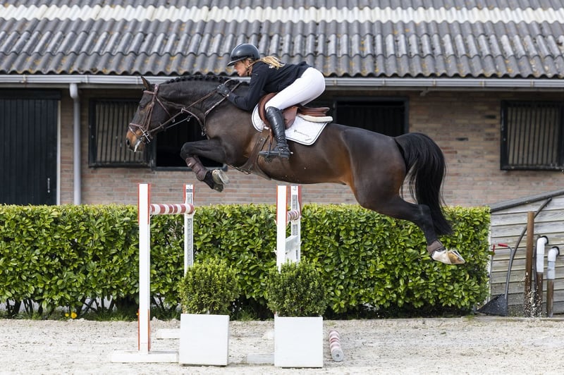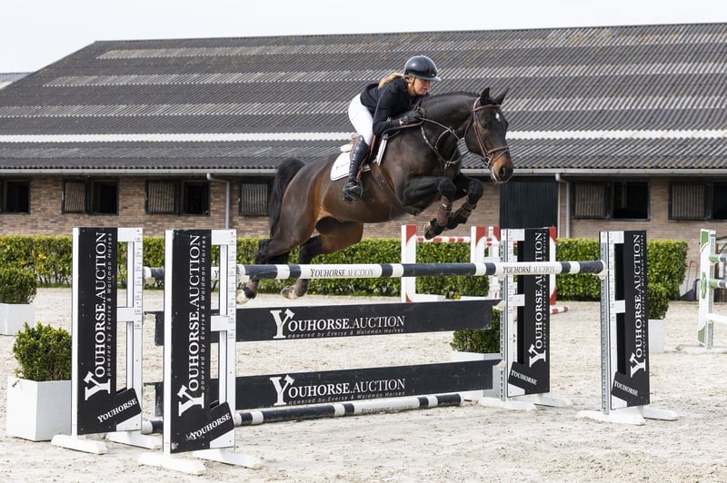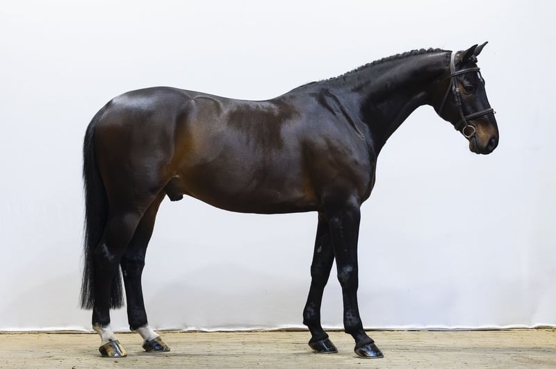 Beautiful dark bay gelding with a good appearance. Has already jumped 1.30m once. Jumps with good technique and a careful way. Easy to ride and gives a pleasant feeling under saddle. Due to his way of moving and jumping also interesting as a hunter. Suitable for a better amateur or semi-professional. Sire Tangelo van de Zuuthoeve (1.60m) competed at the highest level and is one of the most influential stallions of the moment. He produced top horses such as Tobago Z and Darry Lou and is known for passing on scope, attitude and quality. Dam Stien W (Concorde) jumped at 1.30m level and is a proven broodmare. Damline Strong and proven sport line with multiple horses at a high level. From the direct damline come among others: Zabab W – 1.45m Global W – 1.45m James W – 1.35m Domani W – 1.35m Van Stien W Z – 1.30m Further in the line: Iliadiene – 1.60m Breitex Hollywood – 1.60m Vindicat – 1.40m Zephyrus – 1.40m Dillenburg – 1.30m Ernestine – 1.30m A very strong sport line with performances up to 1.60m level, providing scope, quality and attitude.