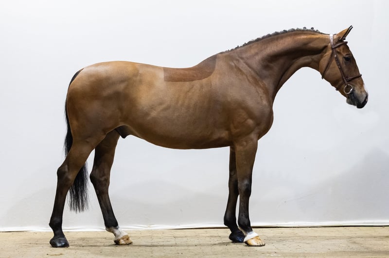 Lauritz is a very pleasant amateur horse with experience at 1.30m level. He jumps in a good way, knows exactly where the pole is, comes across careful and judges the fence well. He gives confidence in the ring and stays honest in his work. He is easy to ride, has refined blood, yet can also handle a rider with a stronger leg. He gives a comfortable and safe feeling under saddle. A horse that helps his rider and thinks along in the course. Sire Gerardus (1.40m) is by Carambole (1.60m), tracing back to Cassini I (1.60m). Gerardus produced several 1.40m horses including Gasalano, Magic Mike and Nicarita. Proven Holsteiner scope is firmly anchored in this line.