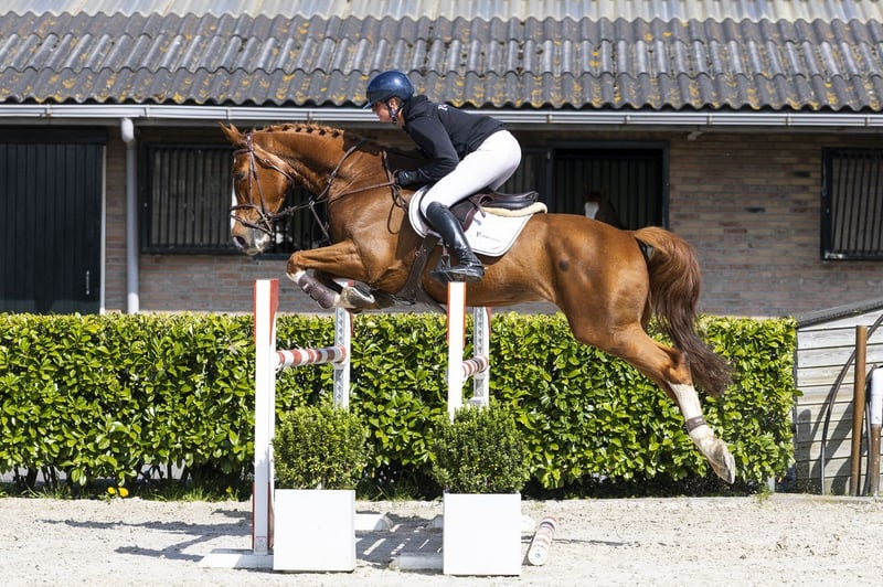 Eventing and allround horse with a lot of go and a strong willingness to work. Has experience in cross country and at 1.00m level. Looks well at the jump and is not spooky. Jumps with a lot of effort and shows a clear desire to go to the other side. Basically easy to steer and well-behaved in handling. Nice horse to ride with a good attitude. The canter is somewhat bumpy and after landing he can be a bit strong, this is a small point of attention in the rideability. Suitable for multiple disciplines and best suited for an amateur with courage who can guide and use his energy well. Very kind horse with an honest attitude. Sire Quasimodo van de Molendreef competed at 1.60m level and is a proven top sire. Through Heartbreaker (1.60m) and Nimmerdor (1.60m) he brings scope, attitude and fighting spirit. He has produced many international showjumpers at the highest level, including Hello Sanctos and multiple 1.60m horses. Dam The dam Arinda S is a daughter of Guidam, bringing extra attitude and sport aptitude. Damline From the damline come multiple sport horses at level. Karinda-S and Kaelyne S compete at 1.35m level. Further in the line we see horses such as Durinda-S, Escudo S and Hypos-S at 1.40m level. Axios S, Fatouch S and several others perform at 1.45m level. There are also outliers to a higher level, such as Gershwin S (1.55m). Additionally, we see a broad group of horses at 1.30m–1.40m level. The line shows a strong and consistent production of sport horses from 1.30m up to 1.55m level, with proven sport and scope.