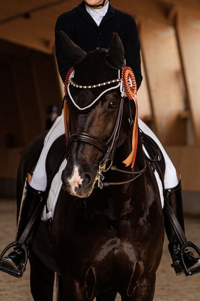 Hello! KMK Black Jack owner here 🙋 Basic info of this stunner: He has secured shoulder-in, half-passes, travers in all gates, walk piruetes, anyone with basic dressage education could do that on him. More advanced rider could easily do flying changes, gallop piruetes and some piaffe. I can send training videos, tons of high quality photos and our daily life videos on request. He has full set of x-rays including back and neck, no major remarks. No bad vices. Big dressage names in his bloodline: Grenoble, Krack C, Florencio, United, Ulft I have references for my previously sold horse in Germany. Our story: The story with him started as after several attempts I bought my 4 yo almost unhandled KWPN mare from the Netherlands back in 2021. Several attempts means that it was very hard to prove that I am a legit buyer, not a trader or anything else, an experienced rider and a horsewomen, also that I am offering a real home, a 5* home. I went to the Netherlands twice, met the owner (Daantje) of my current mare, rode her horses, made online videos from our beautiful stables in Vilnius. Since then we are good and are helping each other in horse related topics. Back to Black Jack: December 2021 Daantje has informed me that a girl from her stables is quitting horses and wants to sell her beautiful 6 yo KWPN gelding and is looking for a good home. She was sure that I would be a good fit for him and that the owner of Black Jack would be happy if he would go to a home I could offer. I have talked to the owner of the stables where I keep my horses and she wanted to contribute in buying Black Jack. The only thing was that we were not planning to go to the Netherlands again and it was close to Christmas time, but I trusted Daantje with my heart, she made videos so I could see his conformation – walking/trotting straight line, from side/back/front – he proved to have no flaws, all straight legs and very correct conformation. He had chip operation from hid fetlock as a 3 yo and X-rays from that time were approved by my vet. So here it was, 2022-01-21 Black Jack arrived to our stables and it was a first time we met, he was more handsome than in photos or videos, real life Barbie Ken. I have also bought his saddle and some more tack because his previous owner was selling completely everything. After settling in, I have started incorporating him to the daily routines – accustoming in paddock, meeting paddock buddies and training. He has met deep snow for a first time in his life, a really happy kiddo. I have learned that he is very friendly with other horses, has never pinned his years or squeak nor kick. He like to have a good run in the paddock but does not go crazy even though other horses has zoomies. I find it important that he goes to the paddock every day otherwise he can be too energetic under the saddle. Once I have started riding him I was amazed how well schooled he was - leg-yelds, shoulder-in could be done by any rider and soon we secured travers and half-passes both in trot and gallop. He is not too hot as a dressage horse but definitely does not need to be pushed forward, he is very soft on his mouth but allows a mistake from the rider’s hand. He likes to look at things but is not spooky, he really needs a tap on his shoulder and some assurance from the rider and scarry objects disappear. We used to go on a long hack to the fields and forest at least every two weeks and if it is not too cold or dark (after office hours) we walk a 10 min circle in the suburbs of the stable before every ride. He can walk alone and is not anxious if he has to leave other horses behind. Trotting and galloping with him in the fields is just amazing because he is very sure on his feet, I like to make one-handed videos of us flying in the wild. Even though he is friendly with all people and accepts other riders, I would call him one person horse, because he is always looking for me and comes to cuddle, he always seeks for assurance, real mama’s horse. He has no bad habits and is really calm in his box, like a Ken in his plastic box. He loves food and there was no food that he would say no to, I love that he is a good keeper and has no weight issues. He had never had any health issues the time I owe him. He is completely safe in handling, loves grooming, stands for the farrier, in the shower, in the solarium, is not afraid of the vet, he can get shots in the stall without being tied. His teeth were regularly done by professionals from Belgium, deworming, shots, all things were on time. Every month he got a bodywork/massage without major remarks, I also do carrot stretches and basic massage before every training. Because I have full time office job, besides me, part time he was ridden by higher level student who competed him time to time. One time he has competed in the children’s class with 13 yo student of mine because my older horse had health issues. She was riding him for a third time and won 2nd place with him! Happy owner I was. Since autumn I have decided that I cannot give enough of training to Black Jack to reach his potential because of the time constraints and my health so lately he was trained by a higher level rider and I put Black Jack up for sale. Lately I have tried to work out keeping him with me because summer is always a calmer time in office so I had a little more time, I have even competed hem in M level which is above my level of training. I used to have 6 horses, mostly youngsters that I have trained, but the circumstances made so that I can only keep my 18 yo gelding and the crazy mare that have lead me to meet and spend unforgettable time with prettiest boy in the stables - KMK Black Jack (Jackson, Juodis, Blacky). I will miss “all eyes on me” showing-off with the black beauty but I believe he will make another person happy and confident in our sport.