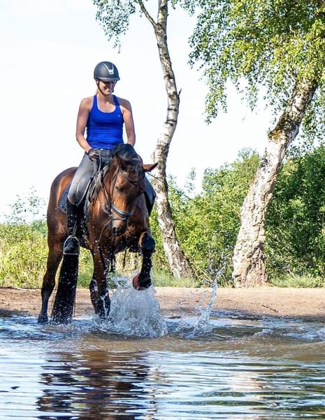 10-jarige ruin van 1.74m. Een eerlijk paard met de nodige ervaring, ook zeer geschikt voor een ruiter die de overstap maakt naar de paarden en een braaf rijpaard zoekt. Hij beheerst de zijgangen en de wissels. Hij is de afgelopen twee maanden niet intensief doorgetraind en is ook al even niet meer op wedstrijd geweest, maar het is een paard dat het werk makkelijk oppakt. Hij gaat wekelijks mee op buitenrit en is zowel in het bos als op de weg braaf en ontspannen. Onder het zadel is hij nuchter, maar in de dagelijkse omgang kan hij soms wat onrustig of nerveus zijn. Netjes volgens schema geënt en ontwormd. Recent bezoek aan de tandarts gehad. Geen stalgebreken. Is destijds als 3-jarige volledig gekeurd. Eventuele nieuwe (her)keuringen zijn toegestaan, kosten koper. Aarzel niet om contact op te nemen voor meer informatie of een afspraak voor een kennismaking.
