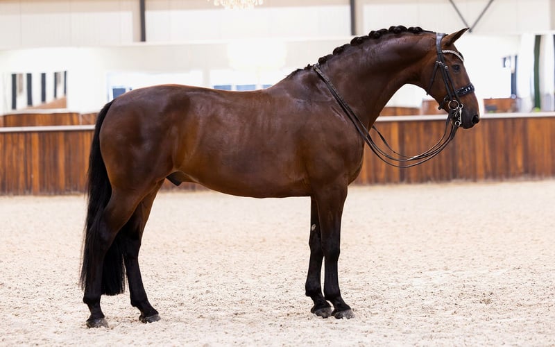 Kirsch ist ein elfjähriger Wallach von Glamourdale – Jazz – Ulft mit drei hervorragenden Grundgangarten, wobei vor allem sein ausdrucksvoller Trab und sein kraftvoller, bergauf gehender Galopp hervorstechen. Er verfügt über Turniererfahrung auf Prix St. Georges-Niveau und zeigt dabei großes Talent für Passage und Piaffe. Kirsch ist leicht im Maul, fein zu reiten und im Umgang zuverlässig, was ihn sowohl für ambitionierte Reiter als auch für talentierte Nachwuchsreiter geeignet macht. Er stammt aus der starken Zucht von O. Wendy (v. Jazz), die bereits das Grand Prix-Pferd Gathe’s Dowendy S. hervorgebracht hat.