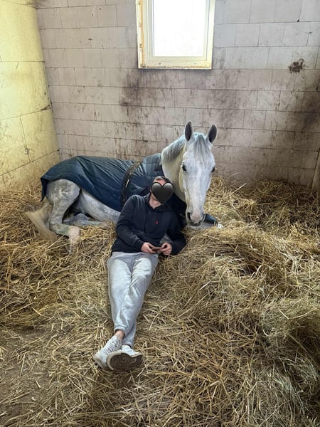 [EN] 11-year-old gelding (2015) By Berlin x Diabeau van de Heffinck A well-balanced horse with a good, rhythmic canter and plenty of scope. Strong and careful over fences. Competed up to 130 cm in the summer season. Currently successfully competing at 110 cm with a young rider, making him an excellent partner for a rider looking to develop further in the sport. Suitable for show jumping as well as the hunter ring. Very calm-minded and bombproof. Well-behaved with no stable vices (no cribbing or weaving). Easy to handle in daily care and grooming, and travels without any issues. A sweet, affectionate type who enjoys human contact. [PL] Wałach, 11 lat (2015) Po Berlin x Diabeau van de Heffinck Koń o wyrównanym, dobrym i rytmicznym galopie, z dużą siłą i możliwościami skokowymi. Mocny i uważny na przeszkodzie. W sezonie letnim startował w konkursach do 130 cm. Obecnie z powodzeniem startuje w konkursach 110 cm pod młodym jeźdźcem, co czyni go świetnym partnerem do dalszego rozwoju sportowego. Nadaje się zarówno do skoków, jak i do klasy hunter. Bardzo spokojny, o stabilnej psychice i „bomboodporny”. Bez narowów (nie łyka, nie tka). Grzeczny przy codziennej pielęgnacji i zabiegach. Bezproblemowy w transporcie. Typ przytulny, lubiący kontakt z człowiekiem.