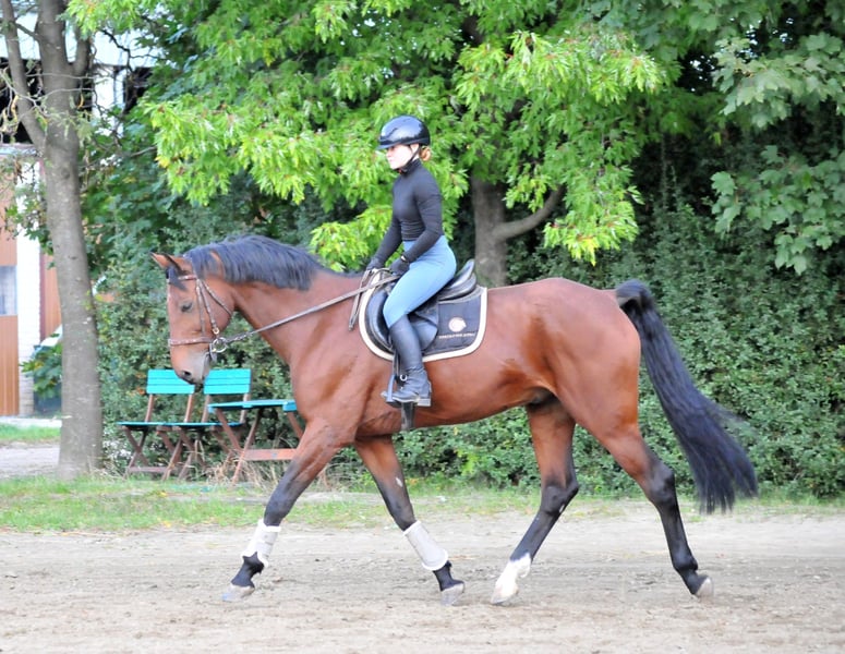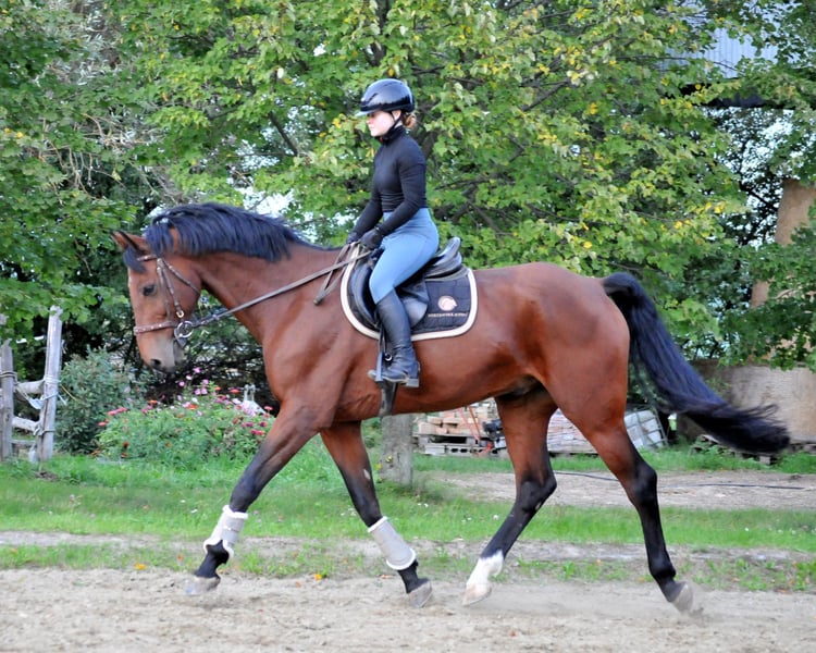 This lovable gelding is the ideal all-round partner for the whole family. He is easy to ride and is familiar with both the riding arena and the trails. Thanks to his gentle nature and fearless character, he is the perfect leisure horse – a top teacher due to his experience in show jumping. Uno has been successful up to 130 cm with a young rider in competitions but no longer wishes to jump large courses today – therefore, he is being offered only as a leisure horse. Of course, this sweet gelding would be happy with either a family or an individual as his future owner. In handling, he is absolutely well-behaved and uncomplicated, and he is also good for shoeing and loading. For more information and videos, feel free to contact via WhatsApp.
