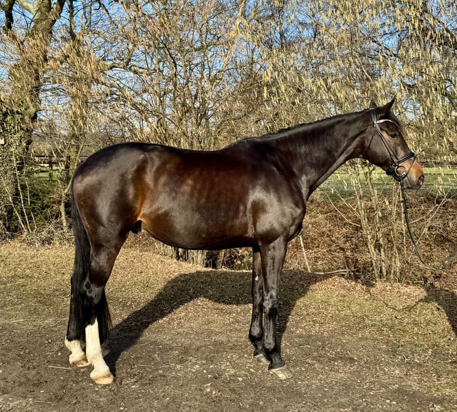 Tolles Pferd geeignet für einen ambitionierten Freizeitreiter mit Freude an Dressur und Ausritten. Jamile ist ein 12 jähriger KWPN-Wallach. Er ist M-platziert und hat Dressurreiter M gewonnen, Lektionen bis zur schweren Klasse sind erarbeitet. Von einem erfahrenen bzw. durchsetzungsstarken Reiter gut zu reiten. Ausritte ins Gelände sind seine Passion dort fühlt er sich sehr wohl und ist sehr brav und ist trittsicher. Vor zwei Jahren Kolik-OP (es wurde kein Darm entfernt), anschließend Milz-Nierenband-OP mit eingesetztem Netz als Sicherheitsmaßnahme. Seitdem stabil und ohne stärkere Kolik-Vorfälle, futtertechnisch gut eingestellt. Jamile wünscht sich einen neuen Freizeitpartner für ausgedehnte Ausritte und gern etwas Spass an Dressur. Zubehör kann übernommen werden