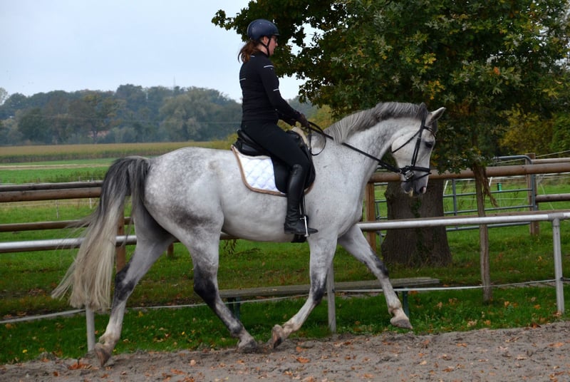 Con il cuore pesante, metto in vendita il mio stallone KWPN di circa 175 cm, di 11 anni, "Dusty" (Du Charmeur), da Dallas VDL x Burggraaf. Questo talentuoso stallone, di genealogia eccellente, è molto versatile. I suoi movimenti sono elastici, ben seduti e potenti, rendendolo un partner promettente sia per le competizioni che per gli appassionati di livello avanzato. Mostra un grande potenziale anche nel dressage ed è molto appassionato nel lavoro. In campo naturale dimostra molta gioia e desiderio di imparare. Nel salto in campo aperto si diverte molto ed è molto desideroso di apprendere. Per il volteggio è attento e rilassato, essendo ancora all'inizio della sua formazione in questa disciplina. Conosce l'uscita in libertà sia da solo che in gruppo. È facile anche nei lavori a terra e nel longiere. In gara e durante gli allenamenti esterni, si presenta sicuro e rilassato sia nel quadrato di dressage sia nel percorso di salto. È molto concentrato e non si distrae facilmente. Dusty è un cavallo stallone senza ferro, quindi non necessita di ferrature. È inoltre facile da caricare. Disponiamo di radiografie di schiena, colonna cervicale, ginocchia, articolazioni tarsali e zoccoli con articolazioni fetali (18 immagini) datate 12/2022. Su queste si riconosce un chip nella zona dell’unghia anteriore destra, che tuttavia non causa alcun problema. È stato regolarmente vaccinato, dewormato e visitato dal dentista. Attualmente si trova in una grande scuderia aperta, conosce anche il box tradizionale con paglia. Dusty si trova molto bene con gli altri cavalli del branco ed è di rango piuttosto basso. Viene venduto per motivi familiari e per il conseguente mancanza di tempo. Video del passo e sotto la sella (dressage e salto) possono essere inviati su richiesta a potenziali acquirenti seri.