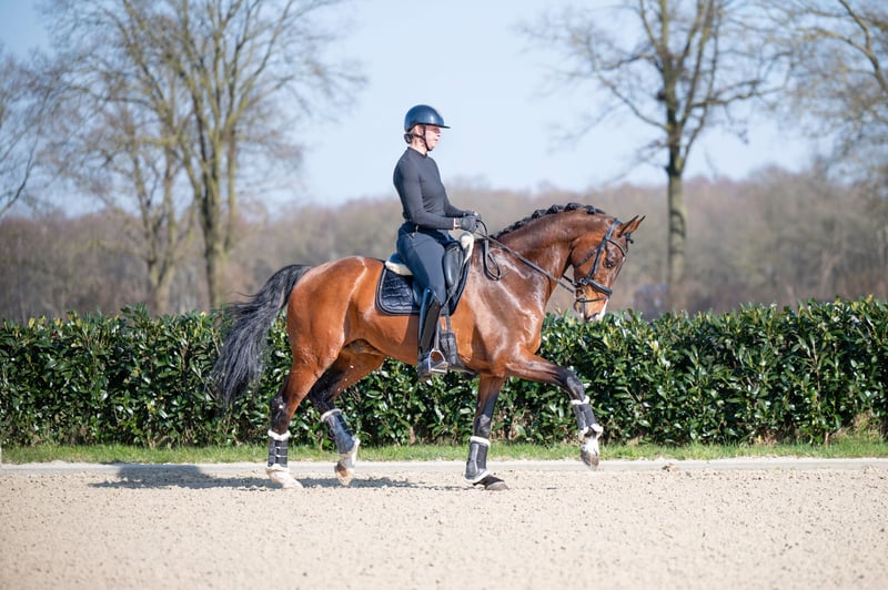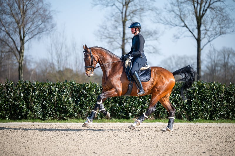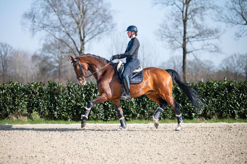 Don Tango B x Darnels I-Tango DH is an incredibly impressive gelding from 2013 with a height of 1.74m. He is a real eye-catcher with his brown color and makes an impression in the dressage ring. With his lineage from Don Tango B and Darnels, he has beautiful, grand movement and a lot of presence. With I-Tango DH, you have a reliable and stable partner in dressage.