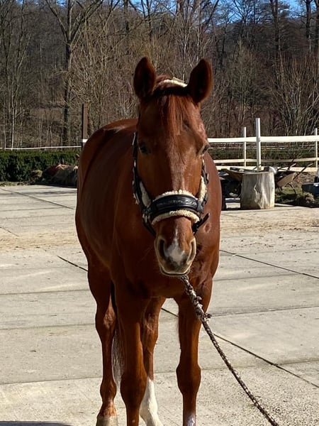 My beautiful gelding is looking for his forever home. Unfortunately, we have to give him up due to health reasons. **Only to places with good air quality!** Hitachi is my absolute heart horse and will only be given up if everything fits. He is unfortunately very limited with us due to his respiratory issues. Therefore, the sale is exclusively to a good forever home. Hitachi is actually a very motivated and eager-to-learn horse; he has been successfully placed up to the L class in dressage and has been diligently learning for the jump to the M class. He is very well-behaved in handling and enjoys going out on trail rides. At competitions, he is a true professional, having collected several placements and wins from rider competitions up to the L class. Hitachi currently occasionally goes around with small children and is always careful and joyful during these moments. I can well imagine that in places like the North Sea or the Baltic Sea, he can regain his joy and fun in equestrian sports. We look forward to meeting you.