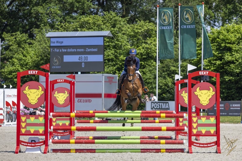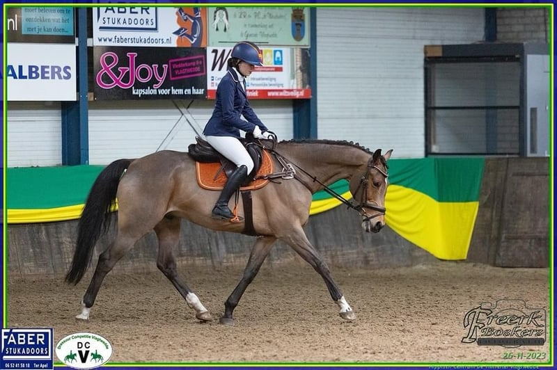 Dit is Freek, een lief en energiek all-round paard. Stokmaat 1.69, leeftijd 15 jaar. Vader Zambesi, VM Ahorn. Lief in de omgang, zeer verkeersmak en landbouwmachine-proof, rustig bij de hoefsmid, loopt makkelijk de trailer op. Freek heeft veel vermogen en past perfect bij een ervaren ruiter die lekker met hem aan de gang wil met dressuur en geregeld of af en toe een sprong wil maken. Ik verkoop hem omdat onze karakters en rij-niveau niet goed bij elkaar passen. Freek heeft meer in zich dan ik eruit kan halen. Freek is een lenig paard, hij is goed wendbaar, makkelijk aan de hulpen en werkwillig. Hij is twee jaar geleden goedgekeurd als sportpaard. Ik heb met Freek dressuur gereden en wat gesprongen. Ik heb geen dressuurwedstrijden met hem gereden maar reed met hem thuis ongeveer op L-niveau. Ook een galopwissel doet hij tijdens dressuur al redelijk. De springwissel zit er goed in.