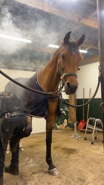 Das ist Freek, ein liebes und energiegeladenes Allround-Pferd. Stockmaß 1,69 m, Alter 15 Jahre. Vater Zambesi, Mutter Ahorn. Lieb im Umgang, sehr verkehrssicher und landwirtschaftsmaschinensicher, ruhig beim Schmied, läuft problemlos in den Anhänger. Freek hat viel Potenzial und passt perfekt zu einem erfahrenen Reiter, der gerne mit ihm im Dressurreiten arbeitet und gelegentlich oder ab und zu einen Sprung machen möchte. Ich verkaufe ihn, weil unsere Charaktere und Reitniveaus nicht gut zueinander passen. Freek hat mehr in sich, als ich herauskitzeln kann. Freek ist ein wendiges Pferd, er ist gut manövrierbar, leicht an den Hilfen und willig. Vor zwei Jahren wurde er als Sportpferd zugelassen. Ich habe mit Freek Dressur geritten und ein wenig gesprungen. Ich habe keine Dressurturniere mit ihm geritten, aber ich habe ihn zuhause ungefähr auf L-Niveau geritten. Auch einen Galoppwechsel macht er im Dressurreiten schon ganz gut. Der Springwechsel sitzt gut.