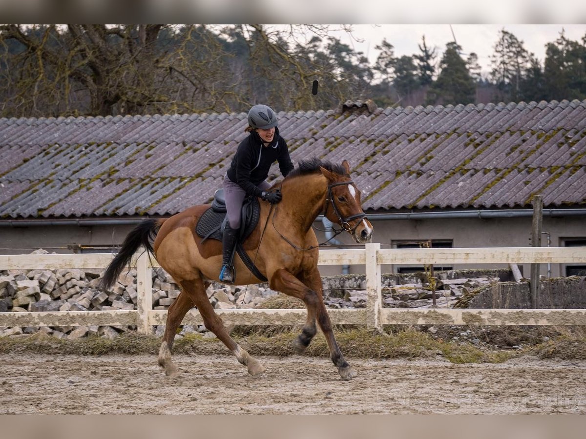 Zu verkaufen steht mein 15-jähriger KWPN-Wallach Felomus, Rufname Felo. Er ist ca 165cm groß, braun und ein echter Schatz im Umgang. Felo hat ein sehr freundliches verspieltes Wesen und Zeigt dabei stets ein faires Verhalten. Er ist niemals böse, sondern bleibt immer brav und gelassen. Mit anderen Pferden ist er ausgesprochen verträglich und liebtdie Gesellschaft - er kann problemlos mit jedem auf die Koppel gestellt werden. Im Gelände ist Felo absolut zuverlässig, sowohl alleine als auch in der Gruppe. Er ist verlade- und schmiedefromm und macht eigentlich alles mit, was man mit ihm vor hat. Auch in außergewöhnlichen Situationen, wie etwa bei Festumzügen, bleibt er entspannt und gelassen. Sportlich ist er bis L im Springen platziert, mit mir ist er überwiegend in A- und E-Springen gestartet. In den letzten beiden Jahren wurde er nicht mehr auf dem Turnier vorgestellt, da ich mein Interesse daran verloren habe. Am Sprung benötigt er etwas Sicherheit, zeigt sich aber motiviert und lernwillig. Dressurmäßig ist er angenehm zu reiten und beherrscht die gängigen Lektionen, sodass er auch in diesem Bereich Freude bereitet. Felo ist ein vielseitiges Pferd, das sogar schon Voltigier Erfahrung gesammelt hat und immer bereit ist neues aus zu probieren. Auch wenn ich ihn nicht als Voltigierpferd abgeben möchte. Für jemanden, der einen zuverlässigen Freizeitpartner sucht, der sowohl im Gelände als auch in der Halle Spaß macht, ist er genau der Richtige. Der Verkauf fällt mir nicht leicht, da Felo mir sehr am Herzen liegt. Aufgrund veränderter privater Lebensumstände habe ich mich jedoch schweren Herzens dazu entschlossen, ihn in neue, liebevolle Hände abzugeben, in denen er die Aufmerksamkeit und Förderung bekommt, die er verdient.