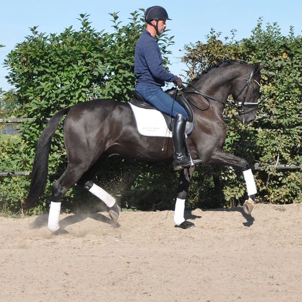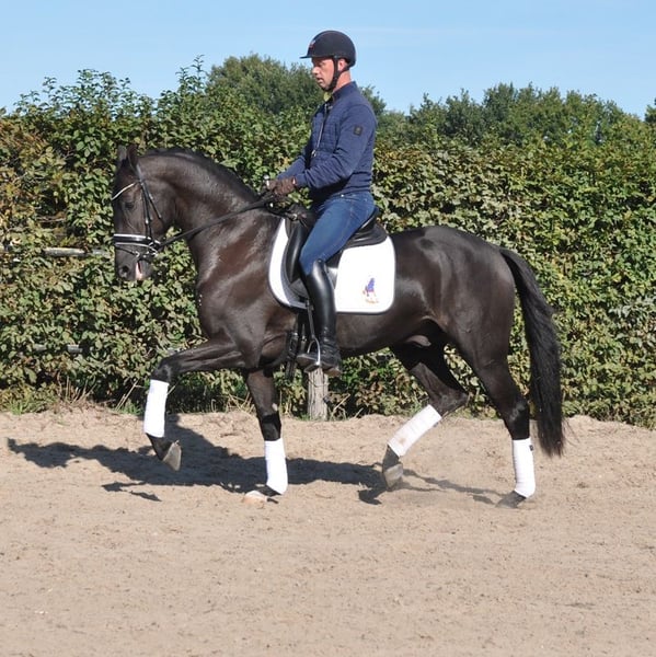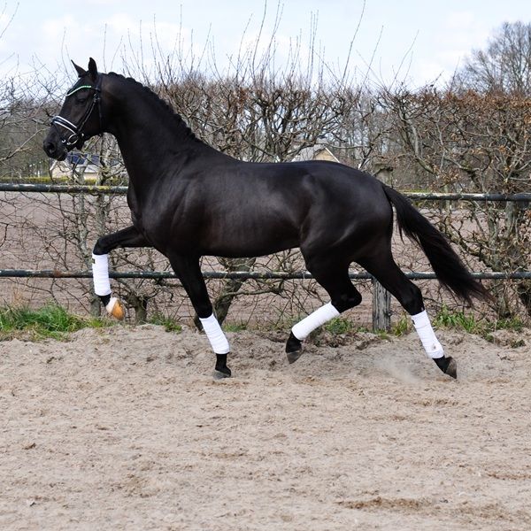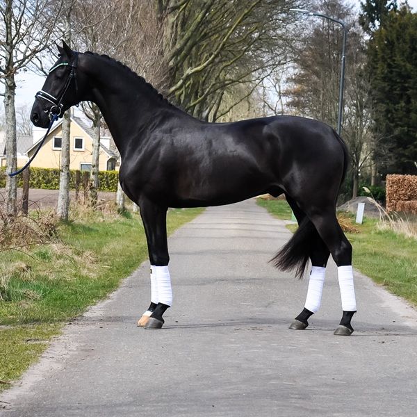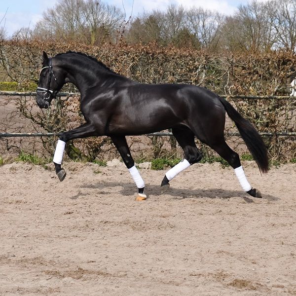 Sparky is a very well-behaved and mega-spectacular gelding! His sire, Secret, is known as a producer of very good character and tremendous movement! His first crop of offspring represented 25% of the participating 5-year-olds at the World Championships for Young Dressage Horses! And numerous licensed stallions! Mother Ethel (Elite, IBOP, PROK, Sport) competed at Small Tour level and is one of the finest horses we have ever had the pleasure to work with. She is also the dam of the licensed stallion Especial (Jochie VZH), who is competing at 5* Grand Prix level under Charlotte Fry, and he is the sire of Everest, the PAVO Cup winner. The licensed stallion Rise as Ledgens VZH is also a son of Ethel. Mother's dam was our foundation mare Wilona. This Elite, Preferent, Prestatie, IBOP, PROK and Sport mare has brought us a lot of good! Everything from this line has an enormous amount of go, commitment, level-headedness and handiness, which makes these exceptionally fine horses to work with!