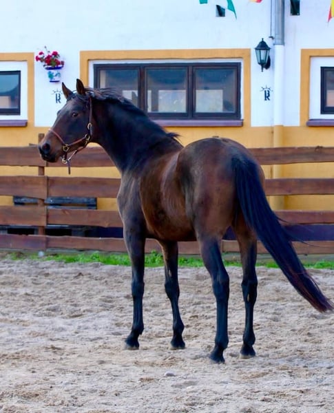 **Annuncio di vendita: Cavallo KWPN di alta qualità per Dressage** In vendita c'è un promettente cavallo KWPN, nato nel 2022. Con un elegante manto marrone e un'altezza attuale di 167 cm, non è solo un colpo d'occhio, ma anche un talentuoso compagno sportivo. Questo giovane cavallo mostra già promettenti potenzialità nei movimenti per il dressage e ha il potenziale per svilupparsi in un eccezionale cavallo da dressage. I suoi movimenti sono fluidi ed espressivi, rendendolo interessante per cavalieri e cavalieri ambiziosi. Al momento, è stato solo lungato, in base alla sua età. È docile nel maneggio, ben educato e si dimostra sempre collaborativo. Il cavallo è adatto sia per il tempo libero che per le competizioni e cerca un nuovo proprietario affettuoso che desideri continuare a svilupparlo e sfidarlo. Per ulteriori informazioni o domande, sono a vostra disposizione. Venite a trovarci e convincetevi voi stessi di questo cavallo talentuoso!
