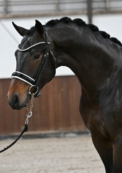 For sale is an exceptionally promising 3-year-old stallion with a commanding presence, modern type, and great sporting potential. The young stallion currently measures approximately 16.1 hh and already impresses with three good basic gaits. Notably, he exhibits elastic movement, good balance, and a natural uphill tendency—excellent prerequisites for a successful future in sport. He has been lunged in accordance with his age and is ready for gentle backing. He consistently shows willingness to work, is eager to learn, and possesses a calm, resilient temperament, providing an excellent foundation for further training. His highly valuable pedigree is particularly noteworthy: his sire, Merlot VDL, is currently competing successfully under top rider Dinja van Liere on the way to Grand Prix, underscoring the great sporting potential of this young horse. He is also in excellent health, with recent clear X-rays available. With his expressive exterior, modern appearance, and movement potential, he is an ideal prospect for ambitious riders who wish to train their sport partner themselves. An exciting young horse for sport and development, sure to attract attention with further training. 📞 Serious inquiries are welcome to contact us at +49 174 7911598. Further information, videos, or an introduction can be arranged at any time.