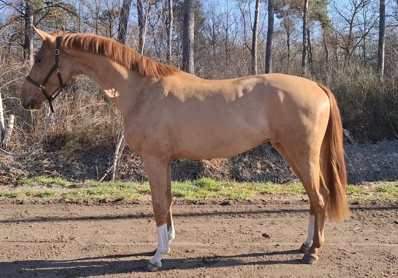 "Tin Tin" A beautiful, tall 3-year-old gelding recently purchased from the breeder. Tin Tin moves very well. He has an uphill build. His walk, trot, and canter all show great potential. He is still completely green. Fairly manageable, but has not yet been introduced to much. Fully clinically and radiographically cleared as of 09/02/2026, including back and neck. Currently measures approximately 1.68 m (16.1 hh). Interested in more information or a video? Call or WhatsApp: 06-42125428 / 00316-42125428