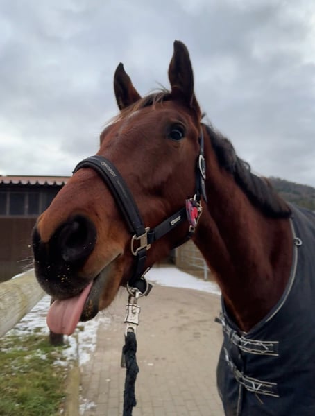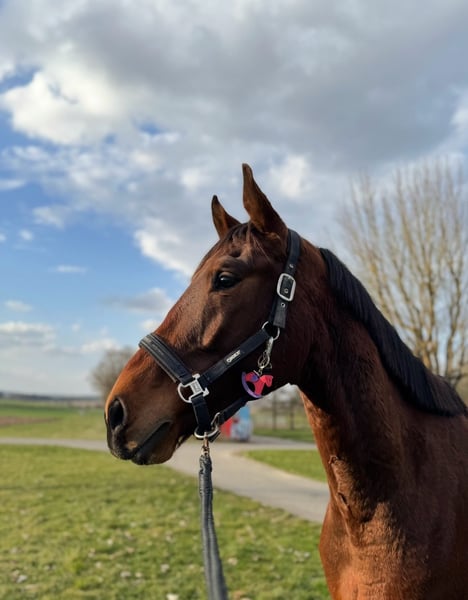 Schweren Herzens biete ich meinen 4-jährigen Skippy zum Verkauf an. Er ist ein sehr typvoller, modern gebauter Wallach mit toller Ausstrahlung und einem rundum liebenswerten Charakter. Seit einigen Monaten unter dem Sattel zeigt er sich stets brav, unkompliziert und lernwillig. Er kennt bereits das Gelände und ist auch dort zuverlässig und gelassen unterwegs. Besonders hervorzuheben ist sein klarer Kopf: Er ist in jeder Situation aufmerksam, mutig und neugierig, dabei niemals ängstlich. Neuen Eindrücken begegnet er stets aufgeschlossen und möchte alles erkunden und entdecken. Im Umgang ist er ein absoluter Schatz – freundlich, menschenbezogen und sehr verschmust. Er kennt Kinder, Hunde sowie landwirtschaftliche Maschinen wie Traktoren und bleibt dabei stets gelassen. Auch beim Schmied und beim Verladen zeigt er sich brav und unkompliziert. Er ist sehr verträglich mit anderen Pferden und sowohl für Offenstall (aktuelle Haltung) als auch Box mit Auslauf bestens geeignet. Er wird aktuell freizeitmäßig gearbeitet und macht dabei viel Freude. Aufgrund eines Befundes wird er nicht für den sportlichen Einsatz angeboten. Da ich jedoch ein Pferd für den Sport suche, habe ich mich – schweren Herzens – zu diesem Schritt entschieden. Mir fällt diese Entscheidung alles andere als leicht, daher wird er nur in ein liebevolles, passendes Zuhause abgegeben, in dem er weiterhin geschätzt und gefördert wird. Weitere Informationen gerne bei ernsthaftem Interesse. Preis: VB Platz vor Preis.