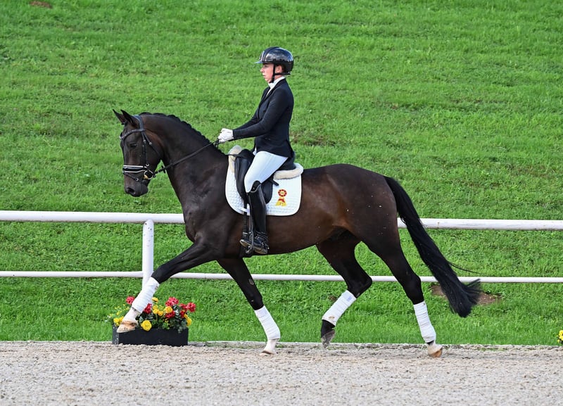 Hier geht's zur Kollektion und Online-Registrierung: https://auktion.pzvbw.de/auctions MwSt. 0% Typcharmantes Nachwuchsdressurpferd, das durch viel Reitkomfort überzeugt. Durch seine guten Grundgangarten und seine sorgfältige Ausbildung war er bei seinem ersten Turnierstart auf Anhieb siegreich in einer Dressurpferdeprüfung der Klasse A. A charming young dressage horse with a great riding comfort. Thanks to his outstanding gaits and meticulous training, he immediately won a novice level dressage horse test at his first competition.