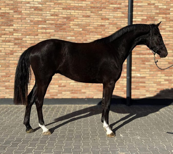 Quality 4‑year‑old gelding, standing approx. 170 cm, with a modern, athletic sport horse type. Well-proportioned with a good neck, strong topline, and a correct, balanced frame. Presents an elegant silhouette with attractive white markings. This gelding is nicely handled, polite in daily management, and easy to show in-hand. He shows a calm and cooperative temperament, making him a promising prospect for further development. Correct legs and solid fundamentals provide a good base for a future sport horse career. An ideal opportunity for a rider or professional looking for a young horse with quality and potential. Serious inquiries only. Additional photos, videos, and pedigree details available upon request.