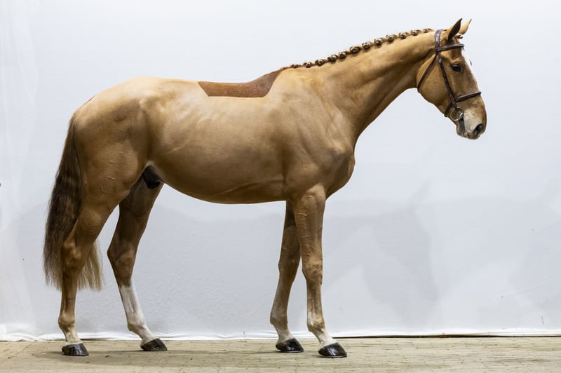 Denzel-type, ready for training courses. A complete horse with plenty of scope and carefulness over the fences. He is already pleasant to ride and shows a good attitude towards the work. A modern sport horse with balance and quality to develop further. Sire Denzel v’t Meulenhof (1.40m, approved KWPN, ZANG, AES) is by Marius Claudius (1.60m) out of the legendary Narcotique de Muze IV line (Quidam de Revel 1.60m x Qerly Chin 1.60m). Denzel has already produced multiple 1.60m performers, firmly anchoring proven Grand Prix blood in this sire line. Dam Nenssen Ryal K (2018, by Jenssen VDL) descends from a very sportive and proven performance family. Second dam Barbarena O.A. (keur, prest, IBOP-spr) is by Montreal VDL (1.60m). She produced: Fello Ryal K (1.35m) Grespo Ryal K (1.30m) Kaltic Ryal K (1.45m) with international placings in Sharjah, Al Ain and Abu Dhabi Lamshire Ryal K (1.40m) with placings in Oliva and Vejer Third dam S. Korena (by Ahorn) produced several international sport horses including: Evli Ellington (1.50m) with CSI2* wins and placings Golden Boy B.S. (1.50m) Marilene (1.35m) Ojay KJ, approved by SWB Fourth dam Korena (by Caletto I) forms the base of a strong Holsteiner line producing: Zimorena G (1.60m) It’s A Men GR (1.45m) Diana P (1.40m) Irena P (1.40m) This damline consistently produces horses competing at 1.40m–1.60m level, combining scope, durability and proven sport performance.