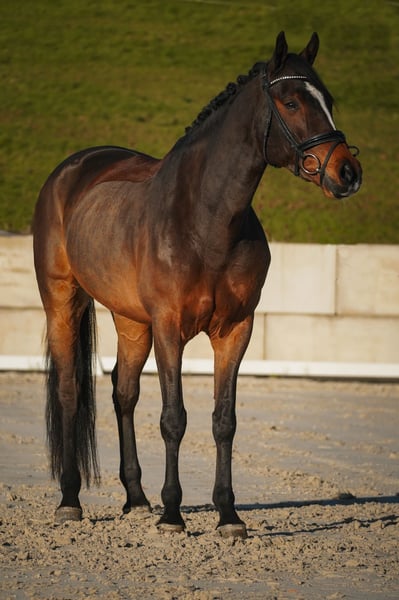 Prothos to urodzony w 2020 roku wałach rasy KWPN, około 167 cm wzrostu, po Henkie, Alexandro P x Vincent, Zaire. *Prothos* to przepiękny wałach o bardzo dobrych ruchach. Jest dobrze ujeżdżony i wyróżnia się wysoką jakością. Już posiada doświadczenie turniejowe i jest odpowiedni także dla młodych lub mniej doświadczonych jeźdźców. Już próbował skakać, okazując radość podczas pokonywania przeszkód, a z odpowiednią pomocą z pewnością sprawi mu to wiele satysfakcji. W terenie był już u nas i pokazał się jako spokojny i niezawodny. W kontaktach z ludźmi jest przyjazny, lubi pieszczoty. To wyjątkowe konie, które sprawdzą się zarówno w rekreacji, jak i w wyższych sportach – posiada wszystko, co jest potrzebne, aby odnieść sukces. To prawdziwa ozdoba, na którą nie można nie zwrócić uwagi. Wałach posiada aktualny, dużej wartości badanie AKU. Hodowla koni Dederichs – Twój partner przy zakupie konia Kontakt i dostępność: Zapytania wyłącznie telefonicznie pod numerem 0173/9792139 Poniedziałek – piątek: 09:00 – 18:00 Sobota: 09:00 – 15:00 Niedziela: dzień wolny Śledź nas na mediach społecznościowych! Zobacz naszą codzienność z końmi na Instagramie, TikToku i Facebooku pod hasłem Pferdehandlung Dederichs Rabaty: Przy natychmiastowym odbiorze swojego wymarzonego konia otrzymujesz rabat od 5% do 10%. Próba jazdy i prezentacja: • Próba jazdy: 30 € za konia (maksymalnie 2 jeźdźców), kwota ta zostanie odliczona od ceny zakupu • Święta: jazda próbna 50 € • Prezentacja przez naszego jeźdźca: 25 € za konia (prowadzenie, praca na lonży itp.) Badanie kwalifikacyjne i transport: • Wiele naszych koni ma już wykonane badanie AKU • Oczywiście możesz zabrać własnego weterynarza • Chętnie zorganizujemy badanie • Pomagamy również w transporcie do nowego domu Więcej koni na sprzedaż: W naszym stadzie dostępne są kolejne konie na sprzedaż, które jeszcze nie są online. Jeśli Twoje wymarzone konie jeszcze nie ma w ofercie, nie wahaj się z nami skontaktować. Ważne informacje: • Szacunkowe wzrosty są podane orientacyjnie i nie zostały dokładnie zmierzone • Wszystkie opisy są subiektywnymi ocenami sprzedającego i nie stanowią gwarancji cech konia Więcej informacji znajdziesz na stronie: www.Pferdehandlung-Dederichs.de
