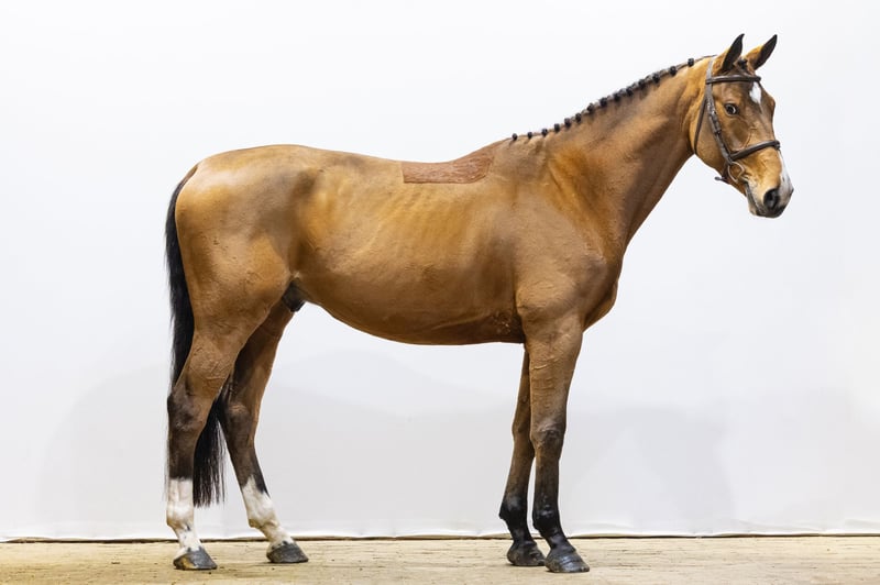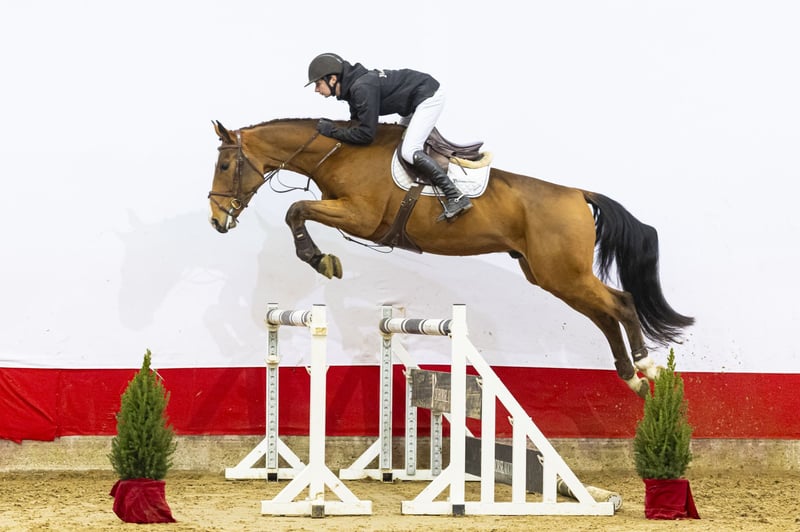 Rodyn is a modern, long-lined sport horse who is still green under saddle, but already shows plenty of quality. He has a big canter, correct basic gaits and clearly displays scope over the jump. He is easy to work with and shows a calm, willing attitude, which is pleasant in daily training. In type he is attractive and correctly built, with a modern sport model. A horse at the beginning of his education, but clearly showing the ability to develop further. Sire Carrera VDL competed himself at 1.60 m Grand Prix level under Jur Vrieling and is a proven name in international breeding. He produced several top-level horses such as Greatest Boy-H (1.70 m), Mister Jup (1.65 m) and Good Farming HS (1.60 m). His offspring are known for scope, rideability and a modern jumping style, all qualities visible in Rodyn. The damline is strongly performance oriented. Dam Chiva (by L’Esprit) comes from a proven sport family. From this damline comes Juwel SFN (by Etoulon VDL), successfully competing at 1.55 m level with international CSI3* and CSI4* results. Granddam Viva (by Lauriston) produced several sport horses, including Boucheron (1.30 m). Further down the line we find many proven performers such as Never Mind 22 (1.60 m), Tumbling Down (1.45 m), Kimberly(1.40 m) and Isabel Santana (1.45 m). This family shows consistent sport performance over multiple generations Rodyn combines modern type, scope and a willing attitude with a well-proven performance pedigree, making him a very interesting prospect for the future.
