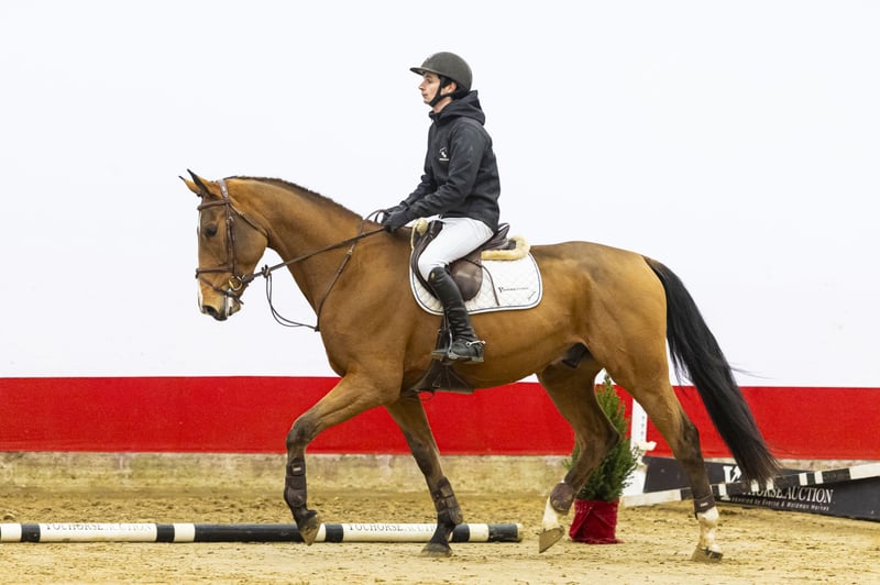 Rodyn is a modern, long-lined sport horse who is still green under saddle but already demonstrates considerable quality. He has a powerful canter, correct basic gaits, and clearly shows scope over the jumps. He is easy to handle and exhibits a calm, willing attitude, which makes daily training a pleasure. In type, he is attractive and correctly conformed, with a modern sport horse build. He is at the beginning of his training but clearly shows potential for further development. His sire, Carrera VDL, competed himself at 1.60 m Grand Prix level under Jur Vrieling and is a well-established name in international breeding. He has produced several top-level horses such as Greatest Boy-H (1.70 m), Mister Jup (1.65 m), and Good Farming HS (1.60 m). His offspring are known for their scope, rideability, and modern jumping style, all qualities that are evident in Rodyn. The damline is strongly performance-oriented. Dam Chiva (by L’Esprit) comes from a proven sport family. From this damline, Juwel SFN (by Etoulon VDL) successfully competes at 1.55 m level with international CSI3* and CSI4* results. Granddam Viva (by Lauriston) produced several sport horses, including Boucheron (1.30 m). Further back, there are many proven performers such as Never Mind 22 (1.60 m), Tumbling Down (1.45 m), Kimberly (1.40 m), and Isabel Santana (1.45 m). This family demonstrates consistent sporting success across multiple generations. Rodyn combines a modern type, scope, and a willing attitude with a well-established performance pedigree, making him a very promising prospect for the future.