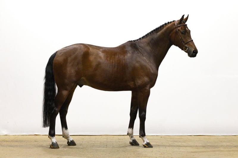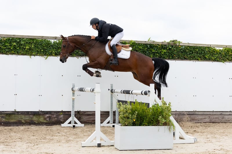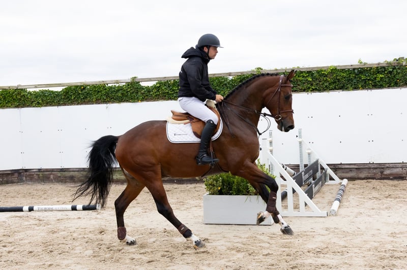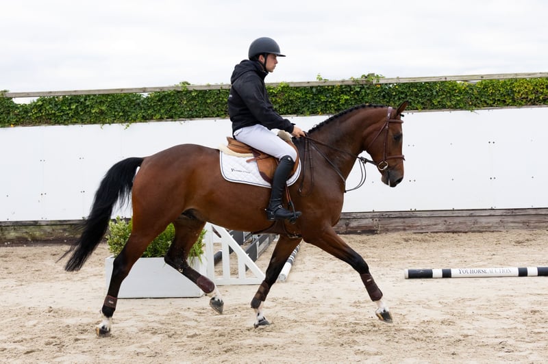 The five-year-old Prospero VE has been under saddle for six months. He stands out with his elegant build, good hind leg usage, and correct posture. His sire, Jacquet-Go, competed internationally at 1.45m level, and as a grandson of the 1.50m mare Ginea (dam of the 1.60m Grand Prix horses Whinny Jackson, Ness G Ninea, and Daddycool Go), he comes from a well-bred bloodline. His dam, Ecapone (Al Capone), competed in 1.30m show jumping courses, as did her dam, Aminea (by Manhattan out of Iroko). This pedigree reflects line breeding, as the great-granddam Minea is a half-sister to the aforementioned Ginea.