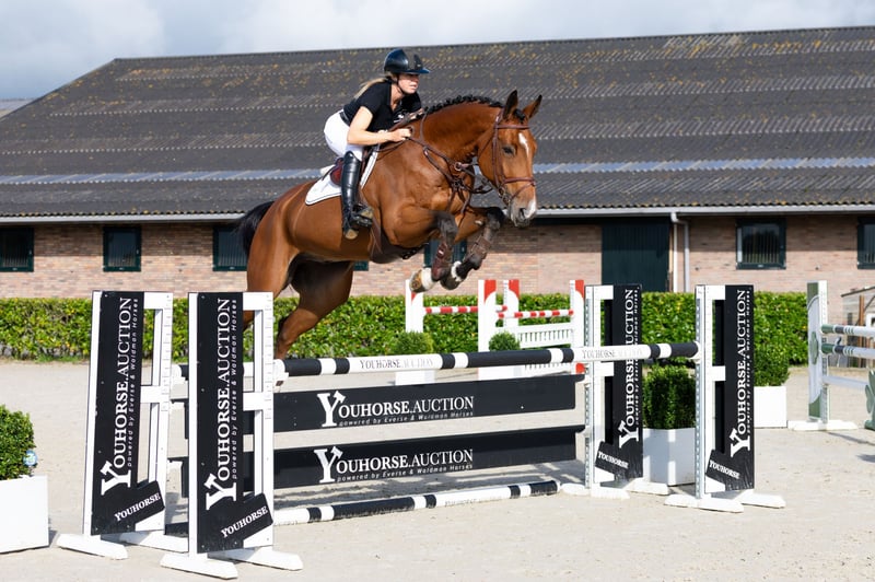 No shortage of scope, just like his sire Grandorado. The five-year-old Paquidorado van de Reesterhof is a large-framed showjumping horse with a nice jumping technique. Sire Grandorado TN N.O.P. is highly successful with Willem Greve at the top level and stands out with his offspring. From his first breeding years, 50 are already jumping at 1.45m, 1.50m or 1.55m level, including the approved stallions Lamaze TN, Ladalco-Z, Landorado A J and Lewandowski. Ten offspring are already 1.55m Grand Prix. Dam Charming Sinaa (Quidam de Revel) is a KWPN elite mare who competed at 1.30m level. She already gave two international showjumping horses: Grenadier Volo (1.45m level) and the nine-year-old Newstar (1.40m level). Granddam Irisinaa (Nimmerdor x Purioso) produced the famous Grand Prix showjumping horse Mac Kinley, so successful with Rolf-Göran Bengtsson, winning Olympic team silver at Athens 2004 and placing fourth individually. https://youhorse.auction/en/auction/Paquidorado-van-de-Reesterhof-GRANDORADO-TN-x-QUIDAM-DE-REVEL
