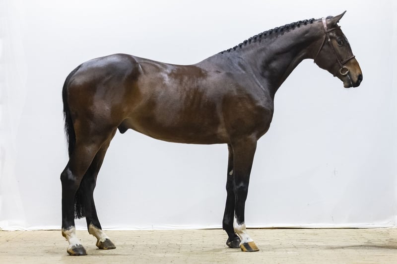 Mooi groot paard met een goed karakter. Klaar voor het oefenparcours. Hij springt met heel veel vermogen en laat zien dat hij het makkelijk oppakt. Een paard met kracht, balans en de juiste instelling om verder door te groeien in de sport. Vader Chacfly PS (1.45m) is een zoon van Chacco-Blue (1.60m), één van de meest invloedrijke verervers wereldwijd. Chacfly PS behaalde internationale klasseringen op 1.40m–1.45m niveau, onder andere in Opglabbeek en Kronenberg. Uit zijn nafok zien we al meerdere 1.45m-paarden zoals Classic Fly VDH, Chagrandina PS en Chaccoulando WCT. Moeder Katy Perry (ster, voorl.keur, D-OC) is een dochter van Wathnan F One USA (1.70m), een zoon van Toulon(1.60m BWP-ambassadeur). Tweede moeder Fidelity (elite, prok, EPTM) is een dochter van Diarado (1.50m). Uit deze directe lijn zien we meerdere internationale sportpaarden zoals: Jagermeister (1.45m) met klasseringen in Ocala en Tryon No Way (v. Eldorado van de Zeshoek TN) – 1.45m Giovanni (1.45m) Imoto II (1.45m) Evita (1.45m) Derde moeder Mitricia (pref, prest) gaat terug op Ircolando en gaf onder andere: F. (1.60m–1.65m) met internationale klasseringen in CSI2* en CSI3* HipHop (v. Emerald van ’t Ruytershof) – 1.45m Glamour (1.40m) Bonheur (1.35m) Verder in de moederlijn via Itricia (v. Wolfgang) zien we zowel 1.60m-springpaarden als internationale dressuurprestaties zoals Black Panter 2 (Inter A/B/II), Echo DXB (PSG/Inter I) en Channel (1.60m). Een stam die structureel levert in zowel spring- als dressuursport. Dit paard kwam eerder onder de hamer, maar doordat de koper zijn verplichtingen niet nakwam, bleef de betaling uit. Het paard zelf is volledig zoals omschreven. Misschien is het geen toeval dat de vorige koper niet heeft betaald — dit paard was gewoon voor jou bedoeld! .