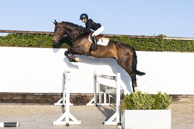 Big strong-built horse with a calm attitude and a nice character. Easy to ride and comfortable under saddle. Well-behaved in handling and picks up the work easily. Shows a consistent way of jumping and is suitable for multiple disciplines. Ready for courses and very suitable for an amateur. Approximately 4 months under saddle. Sire Opium JW van de Moerhoeve – 1.55m level. Son of Kannan GFE (1.60m) and successful at international level with scope and attitude. Dam Cinderella – 1.35m level, daughter of Indorado (1.60m). Damline Granddam Claudia Z – daughter of Caretano Z (1.60m). From this line: Cantona TN – 1.45m, approved stallion Karsten – 1.30m Cloe Newcastle Z – 1.40m Further in the line: CeVin Z – 1.50m, approved stallion Bruce Z – 1.40m Hopes Are High Z – 1.60m Harley VDL – 1.55m, approved stallion Scuderia 1918 Casago – 1.60m, approved stallion Dimitri Z – 1.60m, approved stallion Strong international sport line with proven scope and top-level performance.