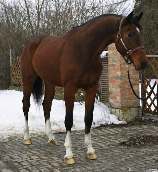 Beautiful bay warmblood with a modern, athletic type and excellent conformation. This horse stands out with a long, correct neck, well-shaped shoulder, strong topline, and powerful hindquarters. Correctly built legs with attractive white markings complete his elegant appearance. He presents a calm, attentive expression and a kind eye, making him a pleasure to handle. Bred for sport with a top-class jumping pedigree, including Chacco-Blue and Contender lines, known for producing talented, rideable horses with scope and quality. Ideal for someone looking for a future showjumper or sport horse prospect. For more information about this handsome guy please contact via WhatsApp: +36306392427