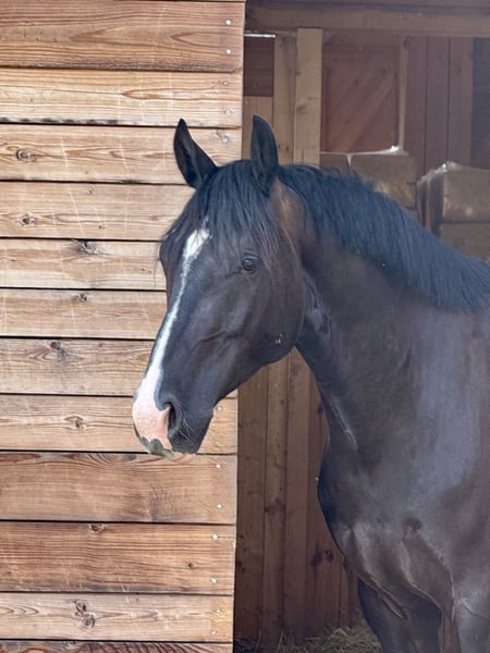 Nous recherchons des mains bienveillantes pour notre hongre de 6 ans, afin qu'il puisse être monté en extérieur ou pratiquer des exercices légers en manège, travail à pied, etc. Le hongre a été opéré et est complètement guéri, mais malheureusement, avant que nous connaissions le diagnostic, il a développé un défaut de la langue qui le rend inadapté pour la compétition ou la dressage de haut niveau ! En raison de cela, nous prions de ne pas faire de demandes en pensant pouvoir le corriger pour une utilisation en compétition. Le cheval est interdit en compétition. Le hongre est sans boiterie et marche parfaitement dans toutes les allures, connaît le travail en dressage sur le manège, mais n’est pas idéal en termes de contact (pas de tête haute ou de comportement similaire). Il est lucide et très calme lorsqu’il est suffisamment sollicité. Il connaît les voitures, vélos, enfants, chiens, machines agricoles… Nous sommes donc convaincus qu’avec une première compagnie d’un autre cheval, il pourra devenir un excellent compagnon pour les sorties en terrain varié ! À notre connaissance, le cheval est en bonne santé, vif et absolument facile à gérer. Il s’entend aussi bien avec des juments, des hongres que des étalons. Il ne donne pas de coups de pied aux autres chevaux. C’est donc un compagnon idéal, capable de rester seul pendant 1 à 2 heures. Nous privilégions une pension en box ou en pâture avec abri. En cas d’intérêt, des accessoires peuvent être achetés avec le cheval. Une assurance pour l’opération est en place et peut être transférée. Le cheval se monte sans problème en extérieur avec des fers ou pieds nus. Les qualités de monte dépendent de la capacité de chacun à monter de manière indépendante. :) Le hongre possède bien entendu tous ses papiers et un passeport européen.