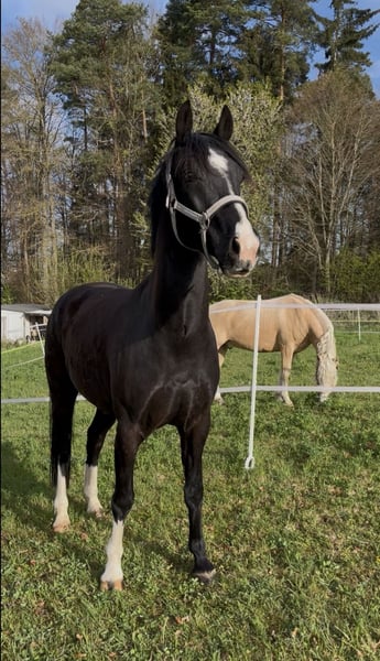 Wir suchen wertschätzende Hände für unseren 6j. Wallach, wo er voll geritten ins Gelände gehen kann oder leichte Platzarbeit, Bodenarbeit etc. machen darf. Der Wallach hat einen operierten und ausgeheilten Befund, leider hat er, bevor wir von dem Befund wussten, einen Zungenfehler entwickelt, der ihn als Turnierpferd/Dressurpferd ungeeignet macht! Auf Grund dessen bitten wir von Anfragen abzusehen, die das Pferd meinen korrigieren zu können und dann auf Turnier nutzen zu können! Das Pferd ist als Turnierpferd gesperrt! Der Wallach ist lahmfrei und taktrein in allen drei GGA, kennt die dressurliche Arbeit auf dem Platz , ist aber nicht ideal in der Anlehnung (kein Kopfschlagen oder ähnliches!). Er ist kopfklar und bei genügend Auslastung sehr gelassen. Kennt Autos. Fahrräder, Kinder, Hunde, Landmaschinen… wir sind uns daher sicher, dass er mit anfänglicher Begleitung eines anderen Pferdes ein super Geländekumpel werden kann! Das Pferd ist ansonsten soweit uns bekannt ist, gesund und munter und absolut unkompliziert in der Haltung. Er versteht sich mit Stuten, Wallachen und Hengsten gleichermaßen. Tritt nicht nach anderen Pferden. Somit ein idealer Beisteller, der auch mal 1-2 h alleine bleiben kann. Wir bevorzugen eine Abgabe in Offenstallhaltung. Bei Interesse kann Zubehör mit erworben werden. Es besteht eine OP Versicherung, die übernommen werden kann. Das Pferd geht bei uns problemlos barhuf. Die Reiteigenschaften hängen davon ab, wie unabhängig von der Hand jemand reiten kann ;) Der Wallach hat selbstverständlich volles Papier sowie einen Equidenpass.