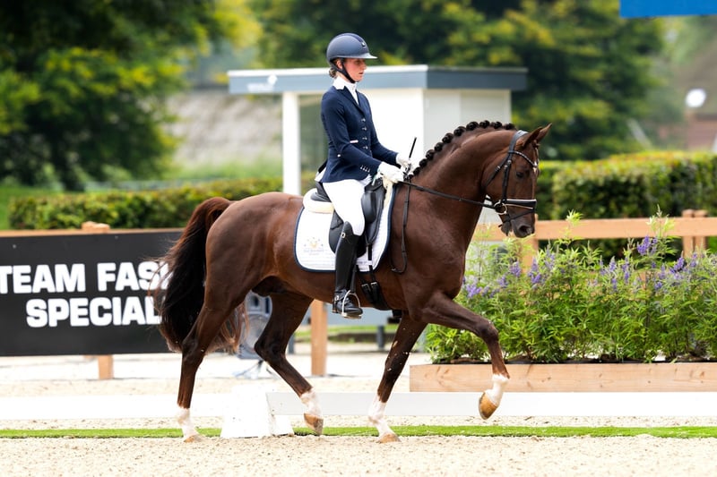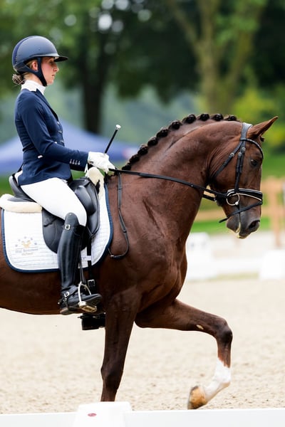 Preston SB ist ein 4-jähriger Hengst von Bordeaux, gepaart mit den Blutlinien Metall und Ulster. Er entstammt einem Mutterstamm, der sich im Sport bewährt hat. Von der gleichen Stute haben wir auch: Genesis (Lord Leatherdale) - ZZZ Dressage Hotspot 22 (De Niro) - PSG Jolly Dolly (De Niro) - ZZZ Dressur Von der berühmten Stute Dolly, der Mutter der Mutter, stammen außerdem mehrere beeindruckende Sportpferde ab: Just Mickey (Michelangelo) - Grand Prix Totall (Metall) - PSG Wolly Ann (Stravinsky) - Grand Prix Preston SB ist nicht nur eine beeindruckende Erscheinung, sondern verfügt auch über das Talent und die Genetik, um im Sport zu glänzen. Für weitere Informationen oder um einen Besichtigungstermin für diesen talentierten Hengst zu vereinbaren, nehmen Sie bitte Kontakt mit uns auf!