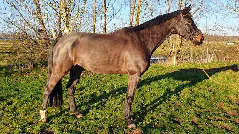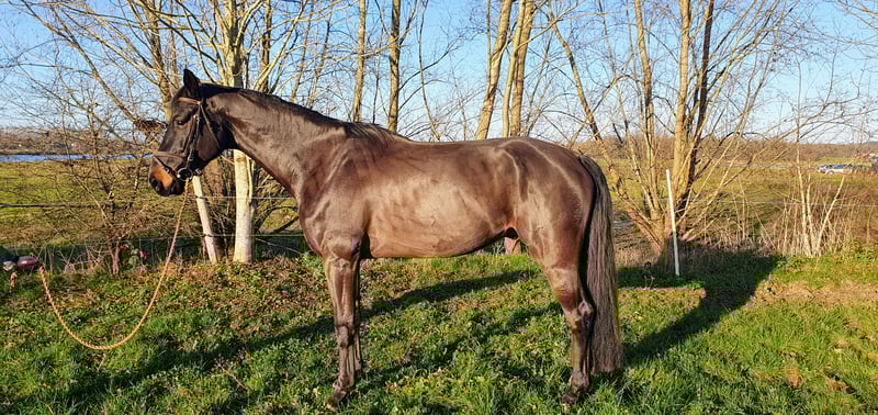Peter is a beautiful 5-year-old black-brown KWPN gelding. His pedigree includes Just Wimphof (De Niro) x Governor (Totilas), from the Holsteiner mare line 1907. His height is approximately 1.67 meters (16.1 hh). Peter has three good gaits and shows great potential for dressage. He is easy to ride and learns quickly. He is well-behaved in handling, including with the farrier and when being clipped. He is not shod. He is familiar with the piaffe. He has not yet been exposed to unfamiliar terrain. Peter is not yet licensed, but inspections at your location are possible. For more information, please call 0653444090. If there is no answer, feel free to send a WhatsApp message. We are looking for a good home for our Peter.