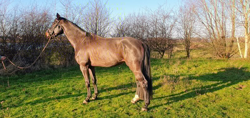 Peter ist ein schöner, schwarzbrauner KWPN-Wallach im Alter von 5 Jahren. Seine Abstammung ist Just Wimphof (De Niro) x Governor (Totilas) aus der Holsteiner Stutenlinie 1907. Er ist etwa 1,67 m groß. Peter verfügt über drei gute Grundgangarten und zeigt großes Talent für die Dressur. Er lässt sich angenehm reiten und lernt schnell. Im Umgang ist er brav, auch bei der Hufpflege und beim Scheren. Er steht nicht auf Eisen. Außerdem ist er mit der Schrittmühle vertraut. Er war bisher noch nicht auf fremdem Gelände. Peter ist noch nicht gekört, eine Körung vor Ort ist selbstverständlich möglich. Für weitere Informationen rufen Sie bitte 0653444090 an. Bei Nicht-Erreichen gerne eine WhatsApp-Nachricht senden. Wir suchen ein gutes Zuhause für unseren Peter.