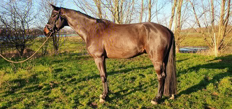 Peter è un bellissimo stallone KWPN di 5 anni, di colore nero-marrone. La sua genealogia include Just Wimphof (De Niro) e Governor (Totilas), proveniente dalla linea di fattrice Holsteiner 1907. La sua altezza al garrese è di circa 1,67 m. Peter possiede tre ottimi andamenti e mostra grande talento per il dressage. È facile da montare e impara rapidamente. In maneggio si comporta bene, anche con il ferratura e durante la rasatura. Non porta ferri. È abituato alla marcia in passo. Finora non è stato mai portato in ambienti sconosciuti. Peter non è ancora stato sottoposto a certificazione, ma è possibile fare una valutazione a domicilio. Per ulteriori informazioni, chiamare il 0653444090. Se non rispondi, si prega di inviare un messaggio WhatsApp senza esitazioni. Cerchiamo una famiglia affettuosa e responsabile per il nostro Peter.