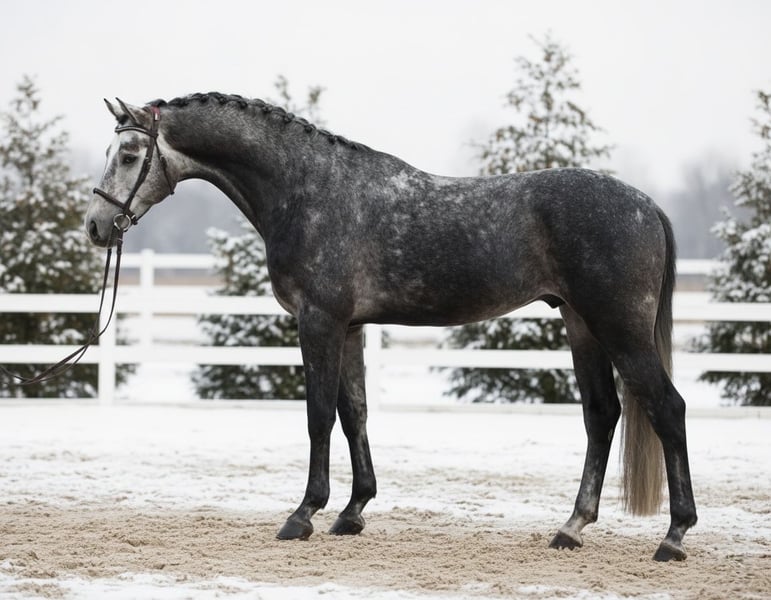 Se vende un caballo de 2019, de 1,68 m de altura, elegante, con un linaje excelente y una temperamento sobresaliente. Como hijo de Congress (Cornet Obolensky – Pilot) de una yegua de Flemmingh, combina líneas de sangre de salto de primera clase con buenos movimientos y un temperamento agradable. Cuenta con radiografías completas e impecables, una estructura corporal correcta y está en perfectas condiciones de salud. Este caballo es amigable, fácil de manejar y se caracteriza por su buena disposición para la monta. Es valiente, aprende rápidamente y se adapta con facilidad a nuevos entornos, lo cual seguramente demostrará en sus primeras competiciones (hasta ahora, aún no ha sido presentado en concurso). En el salto muestra talento natural, potencia y una técnica sólida. El caballo siempre busca agradar a su jinete. Disfruta de su trabajo, no es temeroso y mantiene un ritmo constante con buena balanza. Es muy flexible y elástico, por lo que es apto tanto para jinetes amateurs como para el deporte de ocio de alto nivel. En el entrenamiento diario, es confiable y fácil de manejar, se pisa con sencillez, y también es sencillo de cargar en el remolque. Un compañero perfecto para amateurs ambiciosos o jinetes jóvenes que busquen un caballo talentoso, bien educado y con potencial para el futuro. El caballo se encuentra cerca de Mór, Hungría, y puede ser visto y probado en cualquier momento. El transporte puede organizarse si es necesario. Videos y más información se pueden enviar por WhatsApp; por favor, indique su número de teléfono en el formulario de contacto.