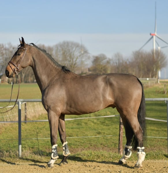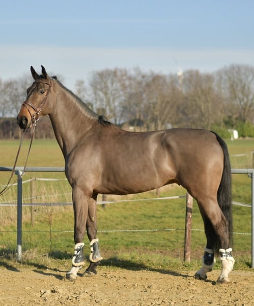 Impressive Show Jumping Horse Perley JRV For sale is an outstanding show jumper standing at an impressive 1.87 meters, renowned for its high quality and exceptional jumping ability. This talented horse has already competed successfully in competitions and consistently demonstrates calmness and reliability under saddle. We are confident that he could also excel as a vaulting horse, although he has no prior experience in this discipline. He is well-trained in dressage and shows his full potential in free jumping—easily and elegantly clearing jumps up to 1.55 meters. **Pedigree:** His lineage speaks for itself: Through sire Grandorado TN and dam sire Indoctro, he boasts a top-class pedigree that is reflected in his performance. ### **Special Offer:** Immediate purchase entitles you to a 5% discount on the sale price! ### **Test Opportunity:** Take advantage of the chance to test this exceptional horse for one week. The trial week can be supervised by experienced trainers, and you have the option to combine lessons with testing. Please note that this trial is subject to a fee, which will not be deducted from the purchase price. ### **Trial Riding:** We invite you to get to know the horse in person. The cost for a pre-ride or trial ride is €30 per person. Don’t miss this opportunity! This horse could become your new partner in sport. Contact us for more information and to schedule an appointment.