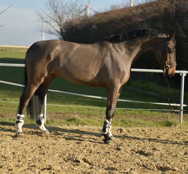 **Beeindruckendes Springpferd Perley JRV ** Zum Verkauf steht ein herausragendes Springpferd mit einer beeindruckenden Größe von 1,87 m, das durch seine hohe Qualität und Sprungkraft besticht. Dieses talentierte Tier hat bereits erfolgreich an Turnieren teilgenommen und zeigt sich unter dem Sattel stets brav und zuverlässig. Wir sind überzeugt, dass er auch als Voltigierpferd eine hervorragende Figur machen könnte, auch wenn er in diesem Bereich noch keine Erfahrung hat. Dressurmäßig ist er gut ausgebildet und zeigt auch beim Freispringen sein volles Potenzial – Sprünge bis 1,55 m meistert er mit Leichtigkeit und Eleganz. **Abstammung:** Sein Pedigree spricht für sich: Über den Vater Grandorado TN und den Muttervater Indoctro bringt er eine erstklassige Abstammung mit, die sich in seiner Leistung widerspiegelt. ### **Besonderes Angebot:** Bei sofortiger Mitnahme erhalten Sie einen Rabatt von 5% auf den Verkaufspreis! ### **Testmöglichkeit:** Nutzen Sie die Gelegenheit, dieses außergewöhnliche Pferd eine Woche lang bei uns zu testen. Die Probewoche kann von erfahrenen Trainern begleitet werden, und Sie haben die Möglichkeit, eine Kombination aus Unterricht und Testen zu buchen. Bitte beachten Sie, dass dies mit einer Probegebühr verbunden ist, die nicht vom Kaufpreis abgezogen wird. ### **Probereiten:** Gerne können Sie das Pferd bei uns kennenlernen. Die Kosten für das Vorreiten/Vorführen oder Probereiten betragen 30 € pro Person. Lassen Sie sich diese Chance nicht entgehen! Dieses Pferd könnte Ihr neuer Partner im Sport werden. Kontaktieren Sie uns für weitere Informationen und zur Vereinbarung eines Termins.