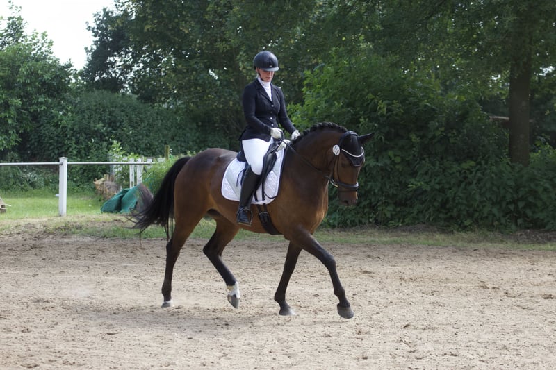 Verkaufe meinen Wallach – Perfekt für die Dressur oder auch Vielseitigkeit! Zum Verkauf steht ein wunderschöner brauner Wallach, geboren im Jahr 2019. Mit einem Stockmaß von 166 cm hat er die ideale Größe für ambitionierte Reiter, die Wert auf Qualität und Charakter legen. Der talentierte Dressurpartner überzeugt durch seine elegante Erscheinung und sein angenehmes Temperament. Er zeigt bereits viel Versammlungsbereitschaft, die das Potenzial für die hohen Anforderungen im Dressursport bieten. Der Wallach ist gesund, dem Menschen sehr zugewandt, möchte immer gefallen und hat spaß an der Arbeit. Er ist freundlich im Umgang und lässt sich sowohl von erfahrenen Reiterinnen und Reitern als auch von ambitionierten Nachwuchstalenten gut vorstellen. Er ist seitdem Fohlenalter in meinem Besitz. Bei Interesse oder für weitere Informationen stehe ich Ihnen gerne zur Verfügung. Eine Besichtigung und Probereiten ist nach Absprache möglich. Ich freue mich auf Ihre Kontaktaufnahme!