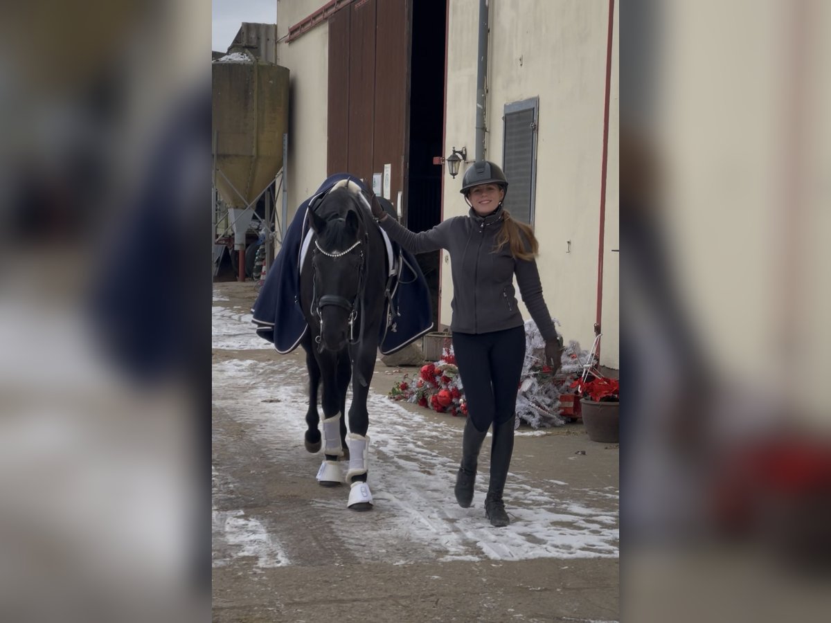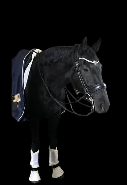 Zum Verkauf steht ein wunderschöner Rappwallach im besten Alter. Als Jungpferd platziert und siegreich in Dressurpferdeprüfungen der Klasse A wurde er ende 5jährig zu uns in den Stall verkauft. Er steht im Eigentum einer sehr netten, aber bereits etwas älteren Kundin, die das Gefühl hat ihm nicht gerecht zu werden, da sie ihn nicht weiter fördern kann. Aus unserer Sicht ist dieser Wallach das perfekte Pferd für Turnier und Freizeitreiter, die Spaß an reiterlicher Entwicklung und Turniersport haben. Er ist sitzbequem, leichtrittig und lernt sehr schnell und einfach. Als klar wurde, dass er demnächst in den Verkauf geht, wurde er von unserer Kundin in Vollberitt gegeben und lernte das L und das L** super schnell und einfach. Gerne stellen wir ihn in diesen Klassen auch noch auf dem Turnier vor. Da er ein großes Talent für Traversalen besitzt, können wir uns vorstellen, dass er für die aktuelle Turniersaison auch das Programm der Klasse M noch schaffen würde, wenn der neue Eigentümer es sich wünschen würde. Für den Verkauf in unseren Stall wurde der Wallach von Praxis Wienand in Bonn komplett getüvt. Der TÜV war OBB Er hat keine unerwünschten Hobbys, wie etwa Weben oder Koppen oder, oder, oder ist natürlich schmiede und verladefromm und kennt alles, was ein Pferd kennen sollte. Er ist KEIN ultimativer Strampler, mit besonders exaltierten Bewegungen, sondern ein losgelassenes, durchlässiges Pferd, das weich an der Hand und damit im Maul ist. Er glänzt und punktet durch seinen klaren, geregelten und räumenden Schritt, einen losgelassenen, fließenden Trab und einen Galopp mit klarem Dreitakt und gutem Durchsprung. Ein Pferd, dass man in jeder Dressurprüfung sehen möchte. Gerne beantworten wir alle Fragen zum Pferd und bieten die Möglichkeit für Probereittermine. Bitte beachtet, das Probereiten kostet bei uns 40,- Euro Gebühr, die gerne beim Kauf verrechnet werden, Termine die über den Reitlehrer, Ausbilder, vereinbart werden, haben keine Gebühr. Wir erheben die Testgebühr NUR zum Schutz vor massivem Reittourismus, der gerade bei „besseren Pferden“ sehr häufig ist und dem Pferd leider schadet.