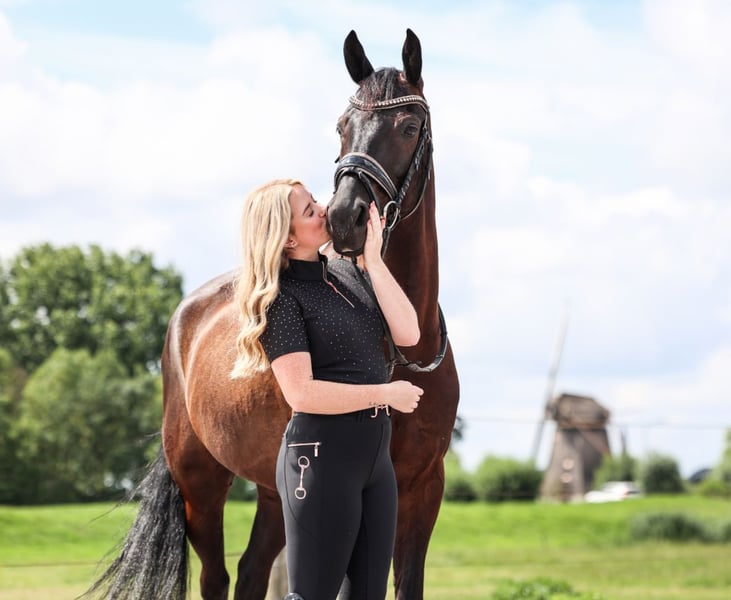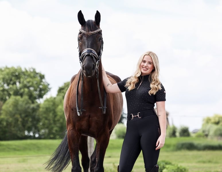 Luigi ist ein KWPN-Wallach aus dem Jahr 2016, geboren aus Love for You x Ulft. Er ist etwa 1,63 m groß, wirkt aber größer. Charakter Luigi ist sehr menschenbezogen und anhänglich. Sobald er uns auf dem Stall kommen sieht, erkennt er uns sofort und möchte sofort aktiv werden. Luigi ist an Regelmäßigkeit gewöhnt. Er möchte morgens wirklich aus seiner Box, im Sommer kommt er auf die Weide, im Winter auf die Paddock. Das ganze Jahr über auf der Weide wäre natürlich ideal! Daher suche ich wirklich ein Zuhause, in dem er viel draußen mit Artgenossen verbringen kann. Er ist sehr sozial und verträgt sich mit jedem Pferd. Allein zurückgelassen zu werden, findet er nicht so schön 😁. Reiten Luigi ist in der Klasse M für Turniere eingetragen. Er ist nicht für einen unsicheren Reiter geeignet. Er braucht eine konsequente Hand. Das gilt auch für die Turniere. Er wird dabei sehr enthusiastisch, daher reitet man am besten mit einem konsequenten und mutigen Reiter. Wenn man regelmäßig mit ihm arbeitet, zeigt er sein Können in der Bahn. Er hat gelegentlich einen kleinen Sprung gemacht, aber das lag nie an der Ambition des Reiters. Er war auch schon auf Ausritten im Wald mit einem anderen Pferd unterwegs, folgt dabei sehr brav. Er lädt problemlos in den Hänger und verhält sich ruhig während des Transports und vor Ort. Gesundheit Luigi ist stets regelmäßig geimpft, hat Hufschmied, Tierarzt, Osteopathen usw. kommen lassen. Dabei ist er immer sehr brav. Ein (zertifiziertes) Röntgenbericht aus dem Jahr 2019 liegt vor. Was suchen wir? Wir suchen ein Zuhause, in dem Luigi für immer bleiben darf. Es war nie unsere Absicht, ihn abzugeben, aber aufgrund privater Umstände ist das nicht mehr fair. Ich suche einen Platz, an dem Luigi unbegrenzt Koppelzeit hat und viel draußen mit Artgenossen verbringen kann. Wenn du also auf der Suche nach einem lernwilligen und arbeitswilligen Pferd mit Potenzial für die Dressur bist, könnte Luigi vielleicht dein Traumpony sein!