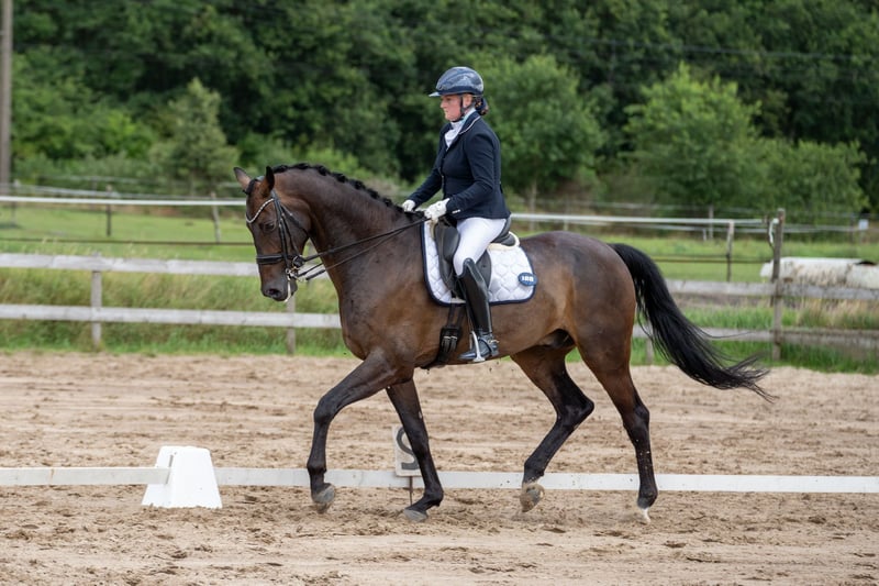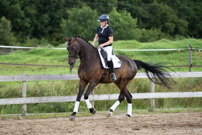 Aufgrund eines Umzugs zum Verkauf angeboten. Lyon ist ein liebenswerter und eleganter 9-jähriger Rapphengst des Apache x Dayano. In den letzten 2,5 Jahren wurde Lyon von einer GP-Reiterin ausgebildet, wodurch alle Übungen sehr korrekt erlernt wurden. Er ist auf dem Niveau Z2+1 eingestuft. Die fliegenden Wechsel sind bereits bestätigt. Er zeigt eine grüne Pirouette und eine Serie. Bevorzugt wird ein sicherer Reiter, der ihn ruhig behandelt und sich Zeit für ein entspanntes Aufwärmen nimmt. Er ist ein lernwilliges und ehrliches Pferd. Seine Impfungen, Wurmkuren, Hufschmied, Zahnarzt- und Physiotherapie-Behandlungen werden regelmäßig dokumentiert. Das Pferd ist klinisch bis Oktober 2025 abgenommen. Lyon weist eine leichte Verknöcherung des Hufknorpels am rechten Vorderbein auf, die jedoch keine Beeinträchtigung darstellt. Lyon ist an die Waschbox gewöhnt, verhält sich brav in der Box, kann problemlos mit mehreren Pferden auf der Weide stehen, ist artig auf fremdem Gelände und bei Ausritten und frei von Boxenfehlern. Er steht am liebsten frei auf dem Anhänger für eine reibungslose Fahrt. Weitere Untersuchungen sind nach Absprache möglich, keine Kostenbeteiligung. Der Preis inklusive Trense, Decken und Satteldecken. Weitere Infos: +49 611 860760