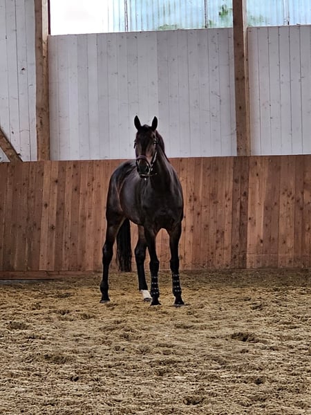 My Louise has been with me since she was three years old. I have gently backed her and trained her patiently. She is a very well-behaved and calm horse, more inclined to be asked rather than to explode. She has learned all the movements with incredible ease. She particularly enjoys groundwork and in-hand work, and she is also familiar with driving under the sulky. Last year, I decided to have her bred. She had a very uncomplicated pregnancy and gave birth to a healthy foal this year. Since I want to keep her offspring, I am now looking for a new family for Louise who enjoys many wonderful adventures with this trustworthy mare. I see her as a family horse or a suitable mount for children and junior riders. Although she masters all the movements up to Grand Prix level, I do not envision her competing at the top sport level, such as three-star competitions. Since I have no ambitions for competition and Louise was never intended for sale, I have never shown her at competitions. However, she is familiar with loading, traveling, and has been to various venues and indoor arenas. Louise was purchased and trained by me in Germany. Due to family reasons, I moved back to Hungary with her almost a year ago. She can be visited at any time. A weekend trip to beautiful Budapest is also an option 😊